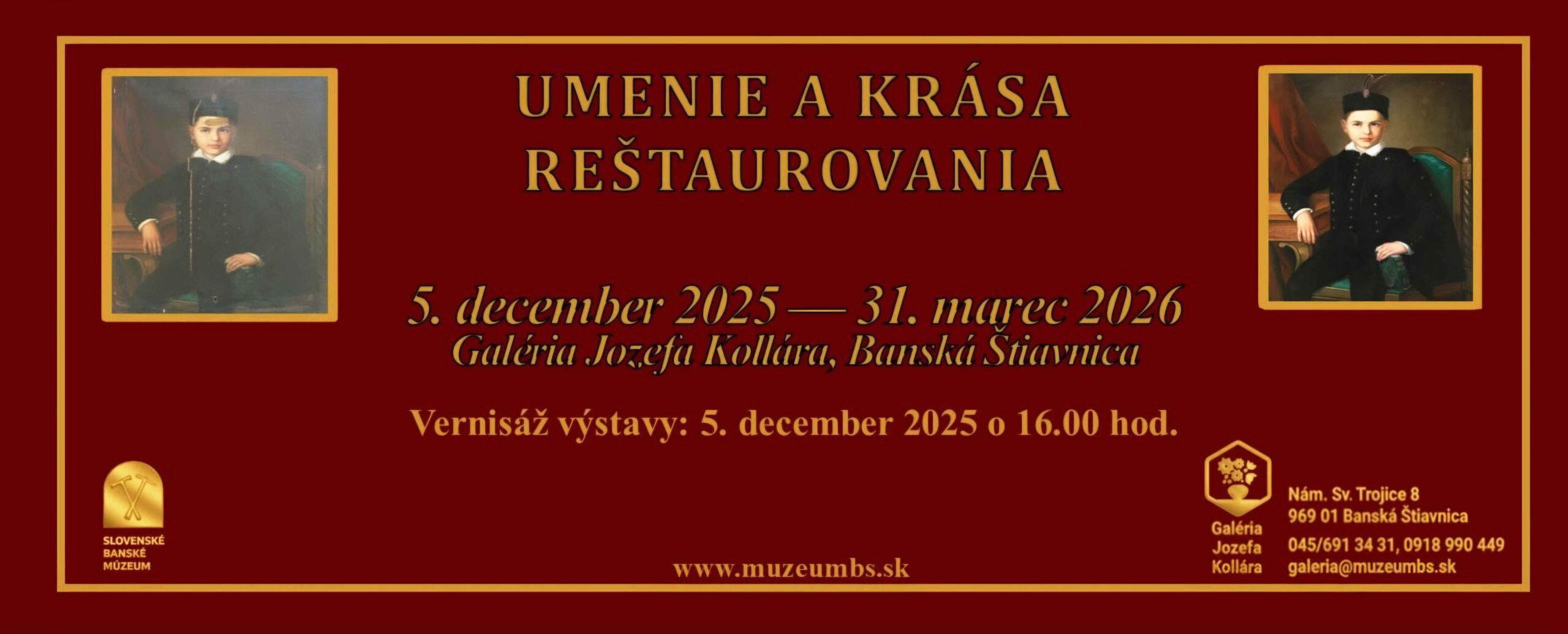 Slovenské banské múzeum v Banskej Štiavnici pozýva na výstavu „Umenie a krása reštaurovania“. Vernisáž sa uskutočnila 5. decembra 2025 v Galérii Jozefa Kollára. Vystavené exponáty si môžete pozrieť do 31. marca budúceho roka.