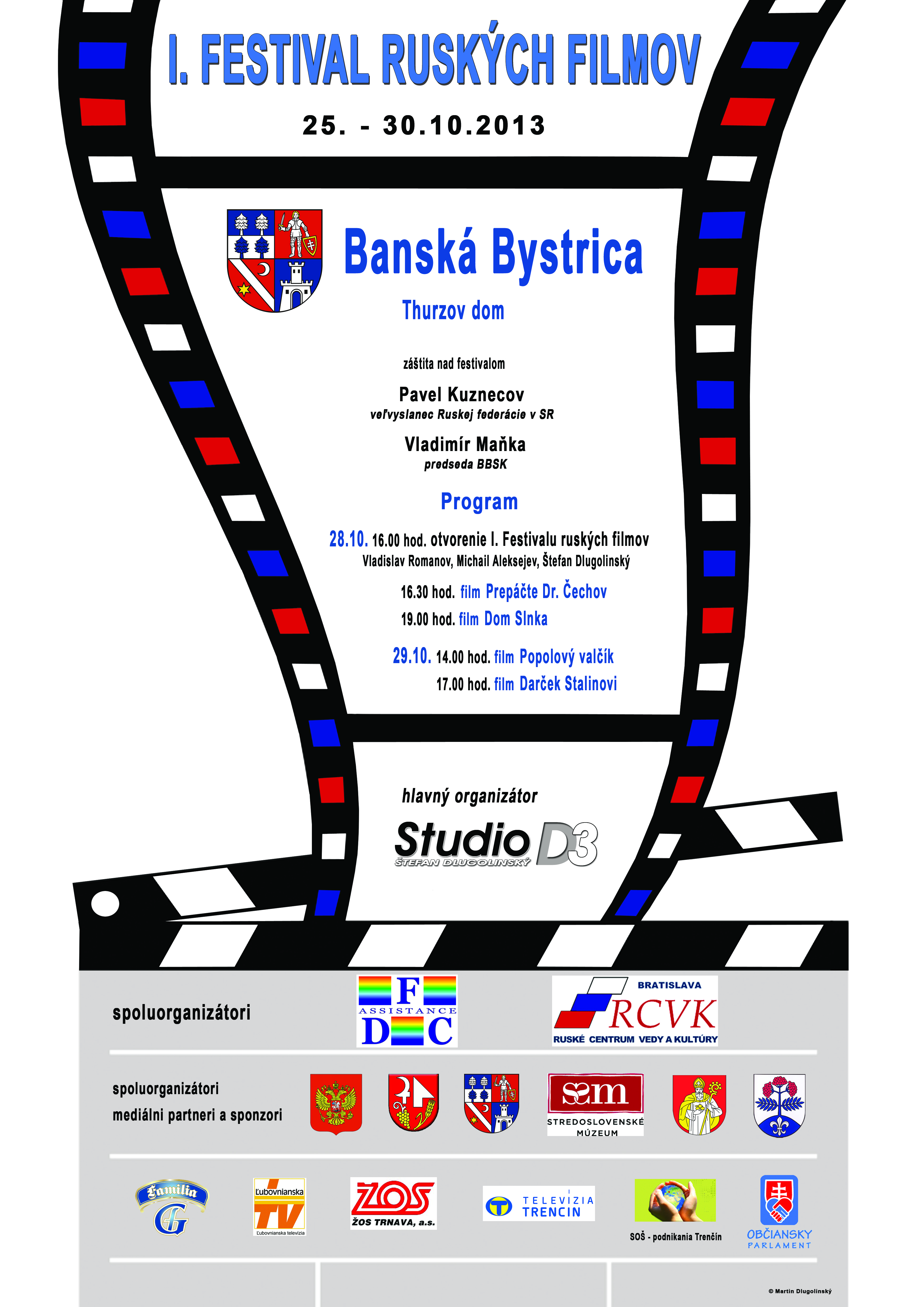1. ročník Festivalu ruských filmov sa na Slovensku uskutoční pod záštitou veľvyslanca Ruskej federácie na Slovensku Pavla Kuznecova a predsedu BBSK Vladimíra Maňku, v dňoch od 25. do 30.10.2013. V Banskej Bystrici sa na fetival môžte tešiť v priestoroch Stredoslovenského múzea v pondelok 28. októbra 2013. Záujemcovia sa okrem iného môžu tešiť na film Prepáčte Dr. Čechov (začiatok o 16.00 hod.) a Dom vetra (začiatok o 19.00 hod.). Okrem Banskej Bystrice festival navštívi aj mestá Rišňovce, Stará Ľubovňa, Jarabina, Trenčín.