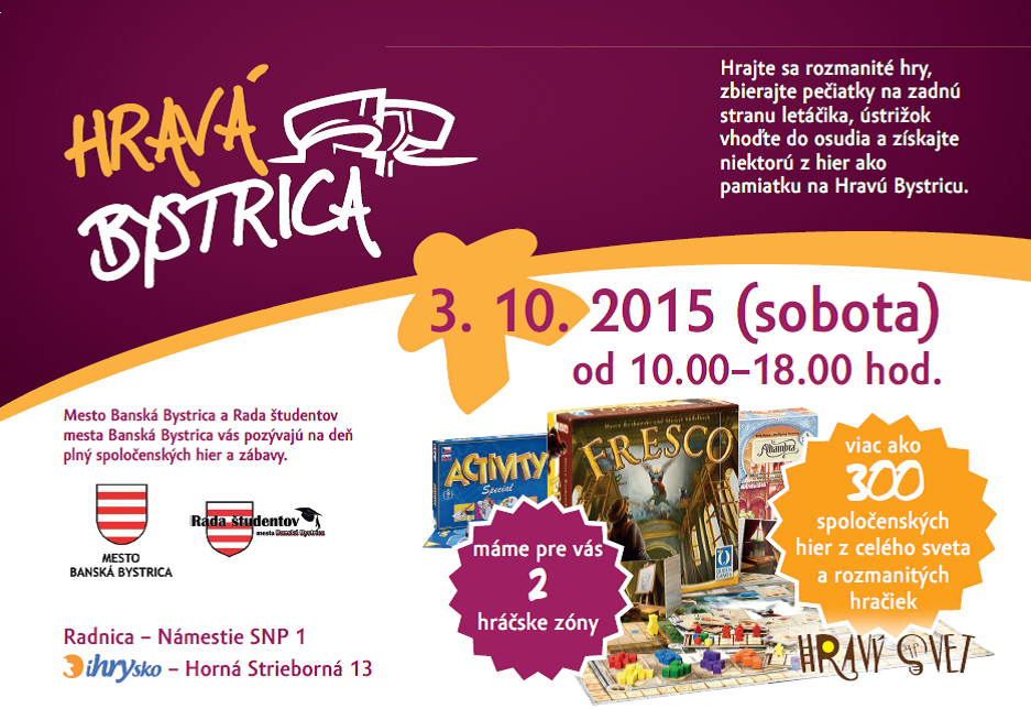 Prvá októbrová sobota sa ponesie v znamení zábavy. Pre malých aj veľkých Banskobystričanov bude k dispozícii viac ako tristo spoločenských hier v dvoch hráčskych zónach – v priestoroch Radnice a predajne iHRYsko.