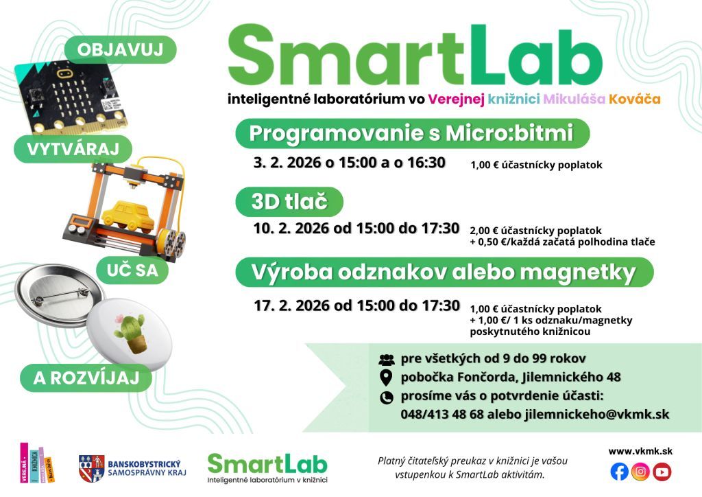 Moderné technológie v knižnici nie sú žiadnym tabu. SmartLab pokračuje vo svojom programe aj vo februári:
