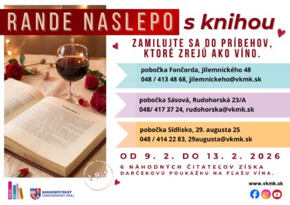 Verejná knižnica Mikuláša Kováča (VKMK) vstúpila do nového mesiaca februára s ambicióznymi plánmi. Pre svojich priaznivcov otvorila celoročnú čitateľskú výzvu, pozýva na netradičné Rande naslepo s knihou a pokračuje v obľúbených podujatiach aj technologických workshopoch v SmartLabe.