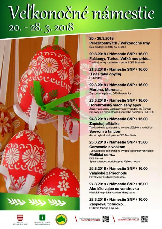 Počas deviatich dní sa môžu obyvatelia a návštevníci Banskej Bystrice tešiť na dobré jedlo, nápoje a širokú ponuku ľudovo-umeleckých výrobkov s veľkonočnou tematikou. Sortiment budú tvoriť predmety z vonného vosku, kože, dreva či šúpolia, maľované kraslice, pletené korbáče, drevené hračky či viazanky a motýliky.