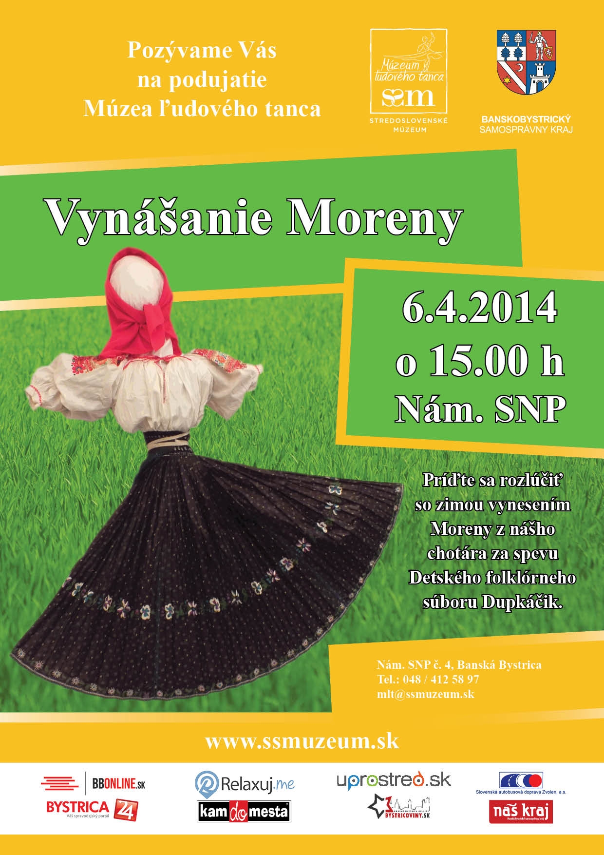 Stredoslovenské múzeum v Banskej Bystrici pozýva všetkých milovníkov ľudových tradícií na rozlúčku so zimou. Múzeum ľudového tanca – zložka Stredoslovenského múzea, pripravilo pre Banskobystričanov podujatie s názvom „Vynášanie Moreny“, ktoré sa uskutoční už túto nedeľu 6.apríla o 15:00 hod. pred Thurzovým domom.
