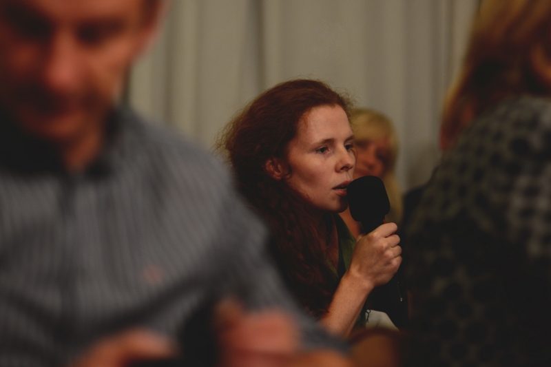 Diskusiu rozvírili hostitelia riaditeľka BDnR Iveta Škripková a režisér Ján Pecko, pridali sa riaditeľka Medzinárodného festivalu Divadelná Nitra Darina Kárová, divadelníčka Viera Dubačová a martinský režisér Peter Mankovecký. Medzi diskutujúcimi boli ľudia z umeleckej, kultúrnej, architektonickej, podnikateľskej, manažérskej, občianskej či novinárskej branže. Bolo o čom diskutovať. Zazneli aj video odpovede Bystričanov a hostí na otázku, načo festival a načo umenie, ktoré sa natáčali v našom meste.
