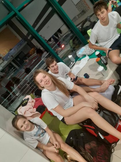 Diaľkoví plavci, tak ako pred rokmi, spali na kalimatkách priamo pri bazéne. O pol štvrtej ráno už mali na svojom konte odplávaných 71 a pol kilometra, pričom voči rozpisu k vytvoreniu nového rekordu strácali niečo cez 500 metrov.