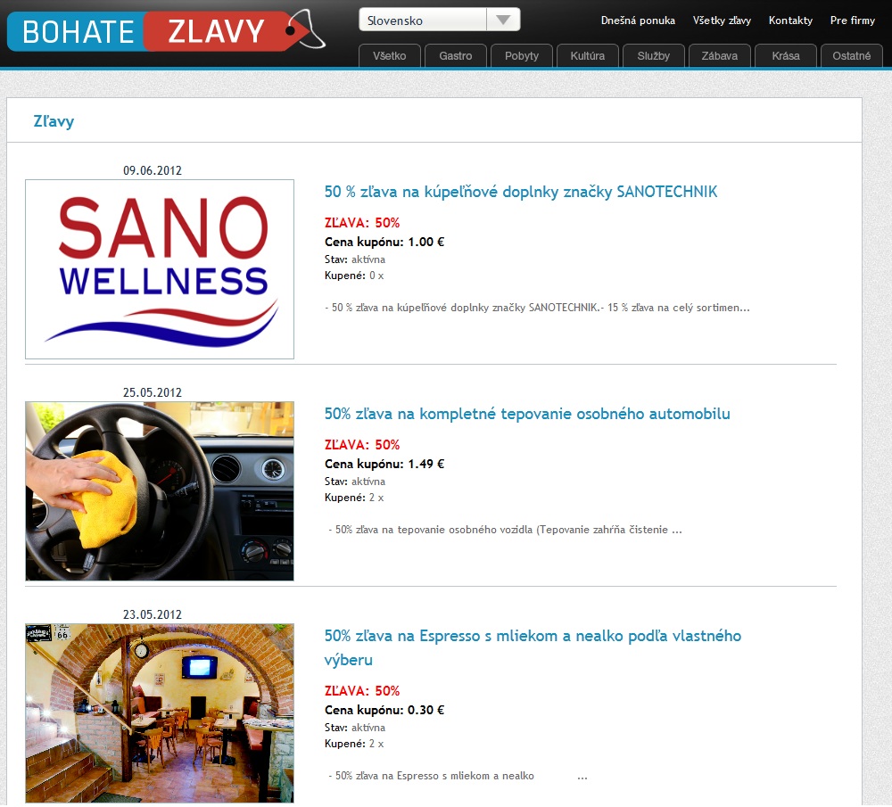 Ak by ste chceli byť informovaný o takýchto skvelých ponukách, stačí navštíviť našu stránku bohatezlavy.sk, napísať Váš e-mail a my Vás budeme informovať o aktuálnych zľavách z Vašho mesta. Alebo kliknite na našu facebookovú stránku Bohatezlavy.sk a dajte „páči sa mi to“.