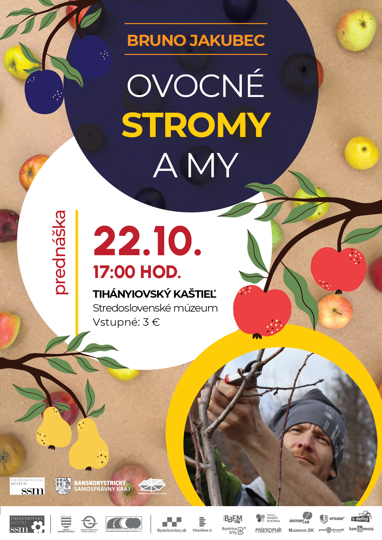Stredoslovenské múzeum – kultúrna inštitúcia Banskobystrického samosprávneho kraja pozýva v stredu 22. októbra o 17:00 hod. do Tihányiovského kaštieľa na prednášku zanieteného ovocinára Bruna Jakubca. Téme ovocinárstva a propagácii starých a krajových odrôd sa venuje už viac ako 10 rokov na akademickej pôde ako aj vo voľnom čase.