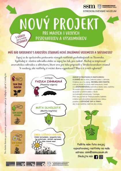 Máš rád prírodu? S radosťou získavaš nové zaujímavé vedomosti a skúsenosti? Zapoj sa do spoločného pestovania rôznych rastliniek pochádzajúcich zo Slovenska v rámci Tvojho jedinečného projektu so Stredoslovenským múzeom.