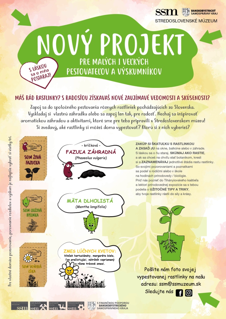 Máš rád prírodu? S radosťou získavaš nové zaujímavé vedomosti a skúsenosti? Zapoj sa do spoločného pestovania rôznych rastliniek pochádzajúcich zo Slovenska v rámci Tvojho jedinečného projektu so Stredoslovenským múzeom.