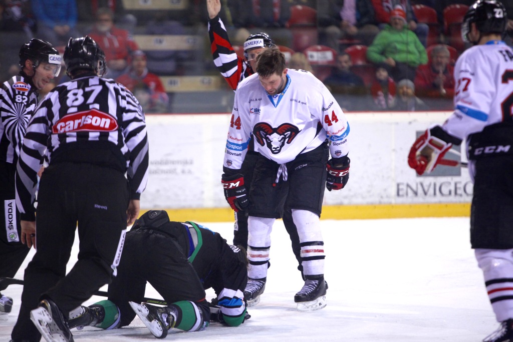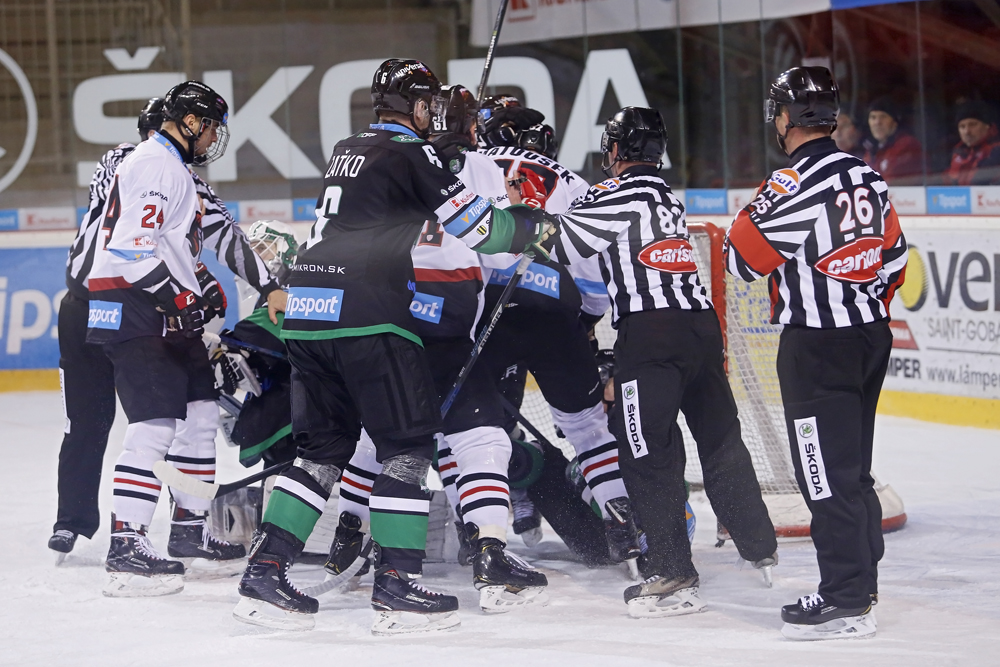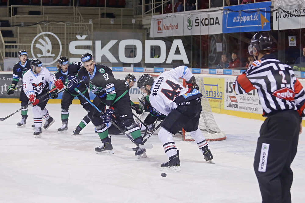 Góly: 9. Asselin (Faille, Southorn), 12. Selleck (Asselin, Faille), 26. Asselin (Faille), 30. Biro (Češík), 44. Selleck (Bartánus, K. Sloboda), 47. J. Sýkora (R. Varga, K. Sloboda) – 5. Zbořil (J. Jurík, H. Ručkay), 41. R. Hruška (Rogoň, Kudla), 60. Zbořil . Rozhodcovia: D. Konc st., Štefík – Výleta, Tvrdoň, vylúčení: 4:6 na 2 min., vyššie tresty: Zbořil (N. Zámky) 10 minút za napadnutie hlavy krku, presilovky: 1:0, oslabenia: 0:0, 2366 divákov.