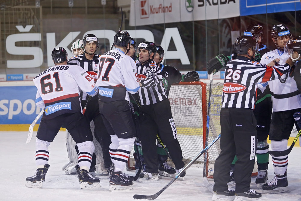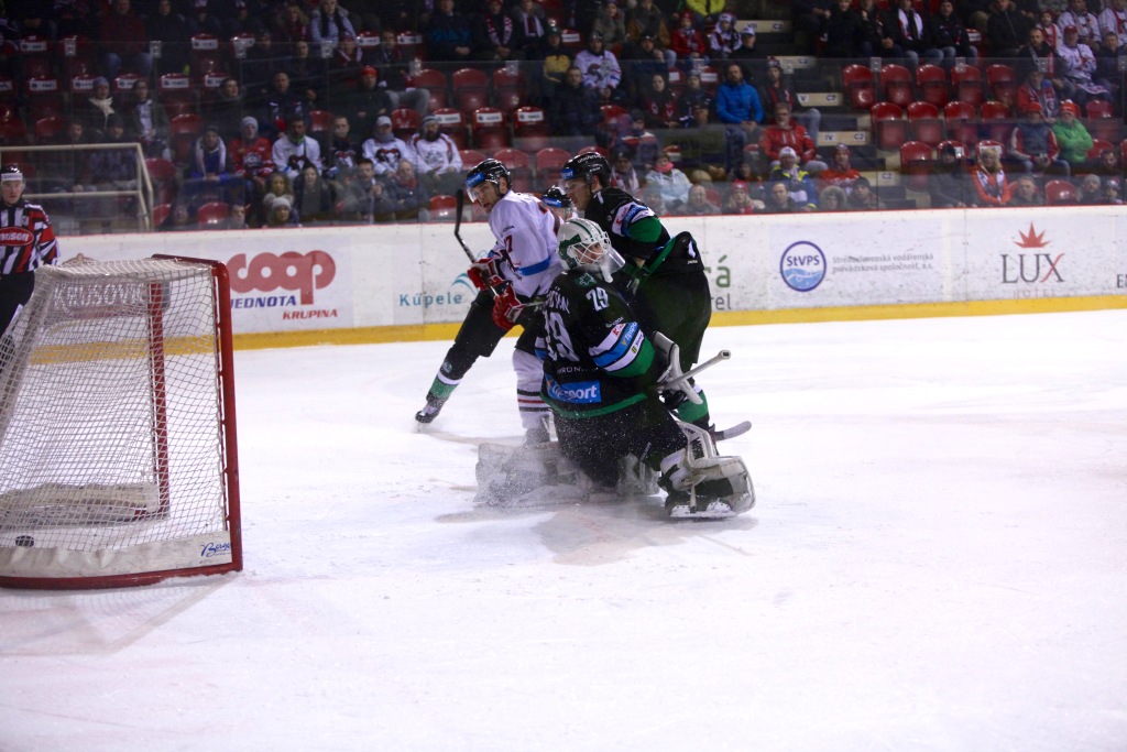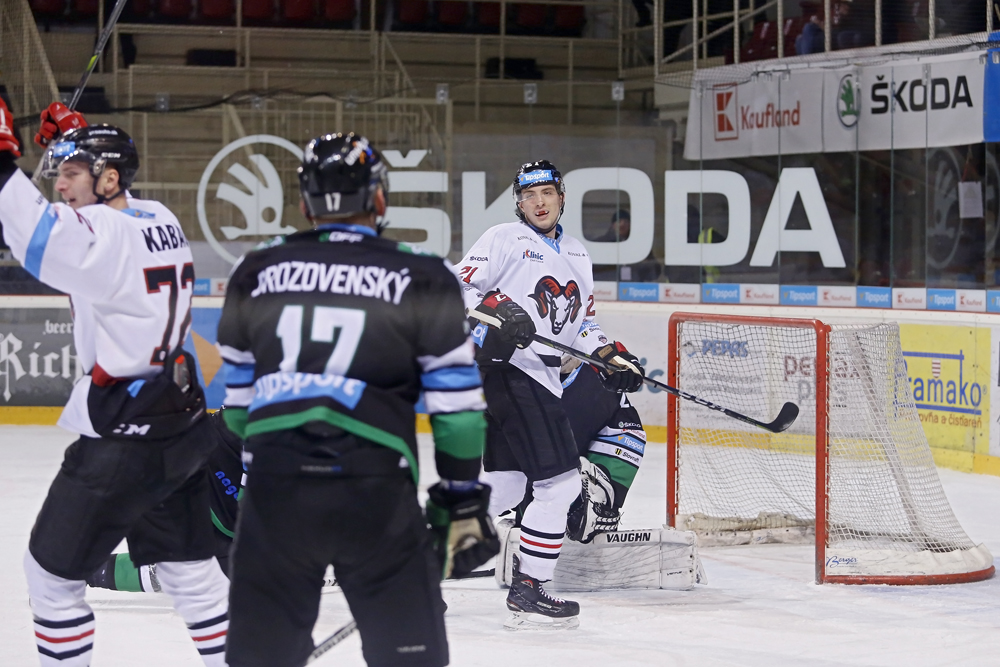 Barani si vytvorili šance hneď v úvode zápasu. Asselin neuspel v presilovke a recept na Košarišťana v bránke nenašiel ani voľný Kabáč. Neujal sa ani nebezpečný teč Ziga a následne sme tak pykali. Hostia využili hneď prvú príležitosť, keď sa po situácii zaváňajúcej ofsajdom presadil Zbořil – 0:1. Bystričania naďalej pokračovali v útočnej hre a vyplatilo sa. Gabor síce v tutovke ešte nedal gól, pretože úradovala Košarišťanova hokejka v poslednej možnej chvíli, ale po rýchlom prechode do pásma bola platná prihrávka Failleho na Guillaumeho Asselina do kruhu, ktorý predviedol peknú sťahovačku ako aj účinnú koncovku – 1:1. Potom zvonili žŕdky na oboch bránkach, o prvé dve sa postaral náš Sýkora, tretiu zariadil obranca Zámkov Novák. V dvanástej minúte sa diváci pod Urpínom tešili druhýkrát. Akcia prvej zámorskej formácie mala oči a Eric Selleck zakončoval už do odkrytej bránky pohodlným spôsobom – 2:1. Do prestávky ešte zvonila žŕdka i po štvrtýkrát, tentoraz z hokejky hosťujúceho Rogoňa.
