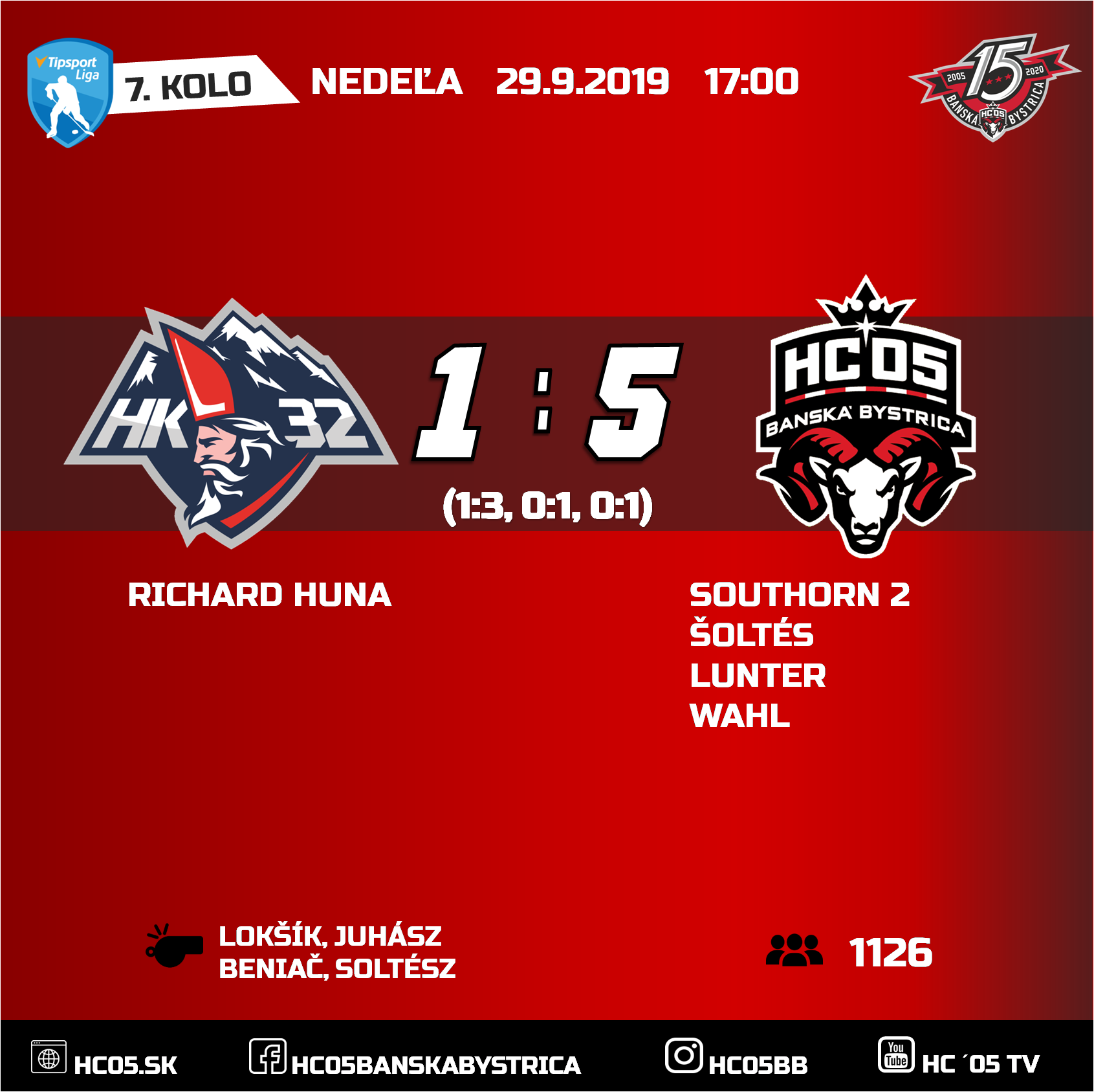 Banskobystrickí hokejisti po dvoch prehrách na domácom ľade vyhrali nedeľný duel 7. kola v Tipsport lige. Cestovali do Liptovského Mikuláša a potvrdili tam rolu favorita. Súperovi nasúkali päť gólov, pričom inkasovali iba raz. Tri body si zapísali do štatistík dvaja naši hokejisti – obranca Southorn (2+1) a útočník Šoltés (1+2).