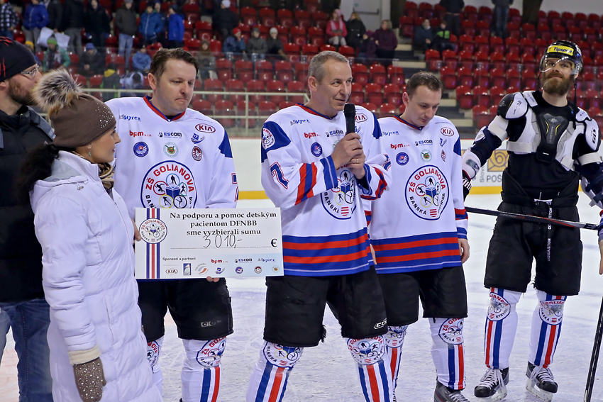 Organizátori po februárovom benefičnom zápase spojenom s dražbou dresov odovzdali občianskemu združeniu Klub priateľov DFNsP Banská Bystrica šek so sumou 3.010 €, čo bol celkový výťažok podujatia.