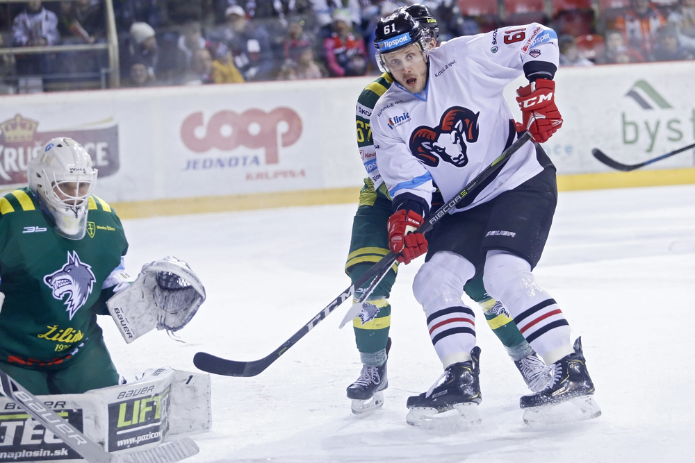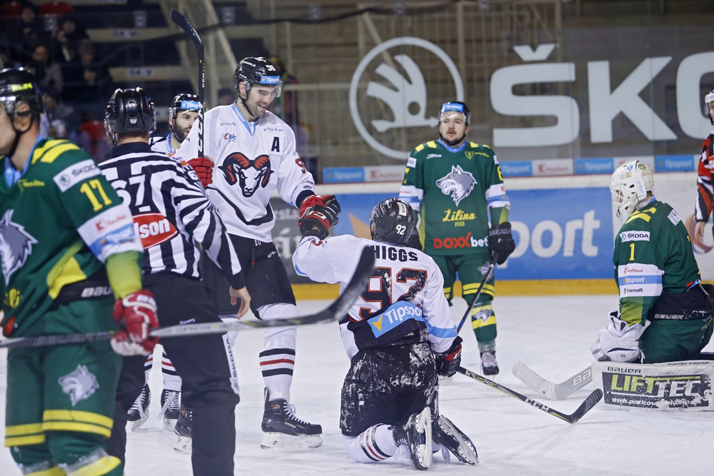 Na začiatku tretej tretiny mali veľkú príležitosť hostia. Dostali sa do prečíslenia dvoch na jedného, ale Huna pred Williamsom neuspel. Ustáli sme aj presilovku súpera, ktorý bol aktívnejší, snažil sa priblížiť na rozdiel gólu, ale mohol i inkasovať, pretože Faille nabil parádne Southornovi a ten pred odkrytou bránkou mieril do bočnej siete. Žilina sa nevzdávala a hneď vzápätí zaútočila. Milý pri pravej žrdi takmer poslal puk do našej taktiež odkrytej časti svätyne. To čo sa nepodarilo ´vlkom´ podarilo sa ´baranom´. Po peknej kombinačnej akcii mal veľa priestoru na pravej strane Guillaume Asselin a jeho koncovka bola excelentná – 5:2. Z gólu sa tešila v hľadisku aj mama tohto nášho hokejistu zo zámoria, ktorá zavítala na zápas pod Urpínom. V závere už iba hostia korigovali stav zápasu po peknej individuálnej akcii Richarda Jenčíka v našom pásme, ktorý predviedol svoje umenie aj v koncovke – 5:3. My sme potom ešte hrali v početnej výhode piatich proti trom, ale túto prevahu sme už nepretavili do šiesteho presného zásahu.