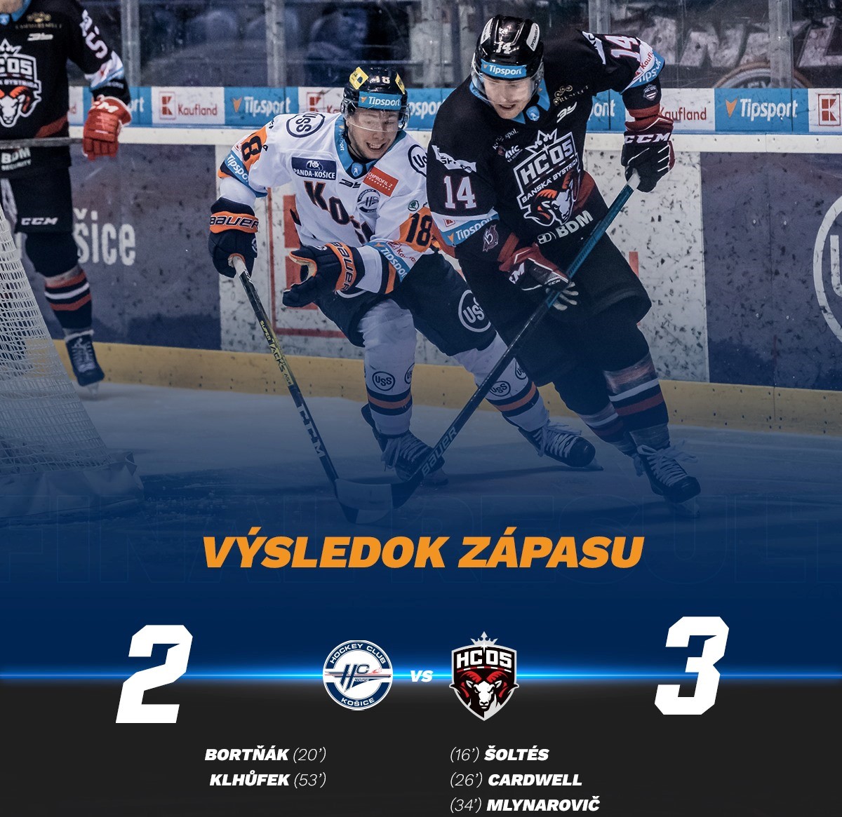 Banskobystrickí hokejisti v 3. kole nadstavby Tipsport ligy vyhrali aj v Košiciach. V dramatickom zápase sme triumfovali po výsledku 3:2. Mužom zápasu bol Samuel Mlynarovič. Na prvé dva góly prihral a tretí sám dal. Po prehre Slovana Bratislava s Trenčínom máme na čele súťaže už šesťbodový náskok.