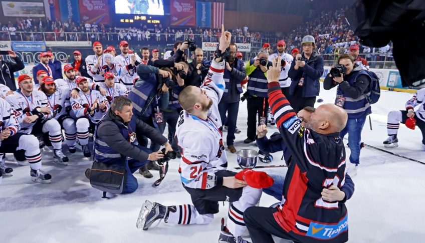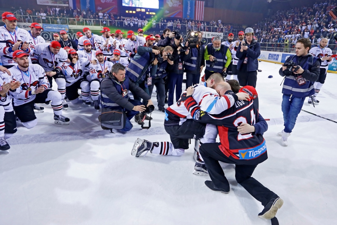 Trofej od rúk kapitána Tomáša Surového putovala rovno na ľad a k nej sa potom sklonili Tomáš Zigo so svojím otcom a bratom. Hlavy mali upriamené dole k poháru, rukami ukazovali nahor ,aby ho napokon mladý odchovanec bystrického hokeja so slzami v očiach zobral a korčuľoval s ním na ľade v rukách. Celý svoj počin vysvetľoval nasledovne: