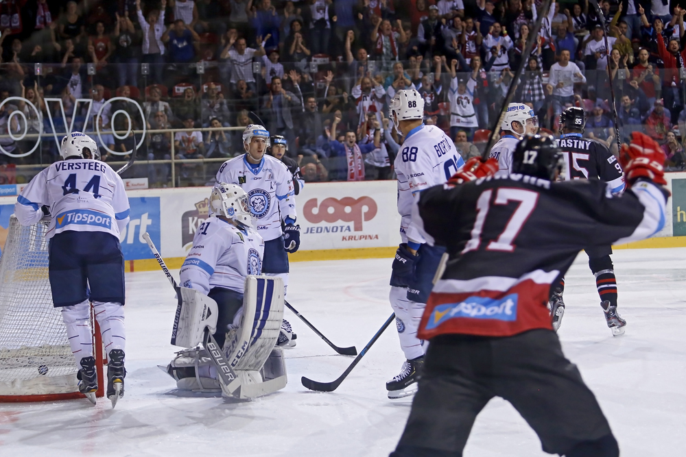 Góly: 2. Zigo (R. Varga, J. Sýkora), 4. A. Šťastný (J. Sýkora, T. Surový), 4. R. Varga (J. Sýkora, K. Sloboda), 15. Gabor (Biro), 17. Asselin (Faille, Marshall), 28. Faille (Ďatelinka, Marshall) – 8. Bortňák (Mychan, Rapáč), 23. Buček (Morrison, Richard), 27. Richard (Buček), 36. Buček, 59. Morrison (Blackwater, Rais). Rozhodovali: P. Stano, T. Orolin – Stanzel, Gajan. Vylúčení na 2.min: 5:8. Presilovky: 2:1. Oslabenia: 0:0. Diváci: 2512.
