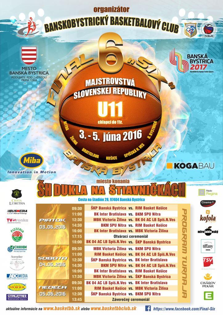 Finálový turnaj Majstrovstiev SR v basketbale U11 sa koná v dňoch 3. – 5. v Banskej Bystrici. Zúčastňuje sa ho šesť mužstiev. Okrem domáceho ŠKP Banská Bystrica sú to RIM Basket Košice, BKM SPU Nitra, BK Inter Bratislava, MBK Victoria Žilina a BK 04 AC LB Spišská Nová Ves.