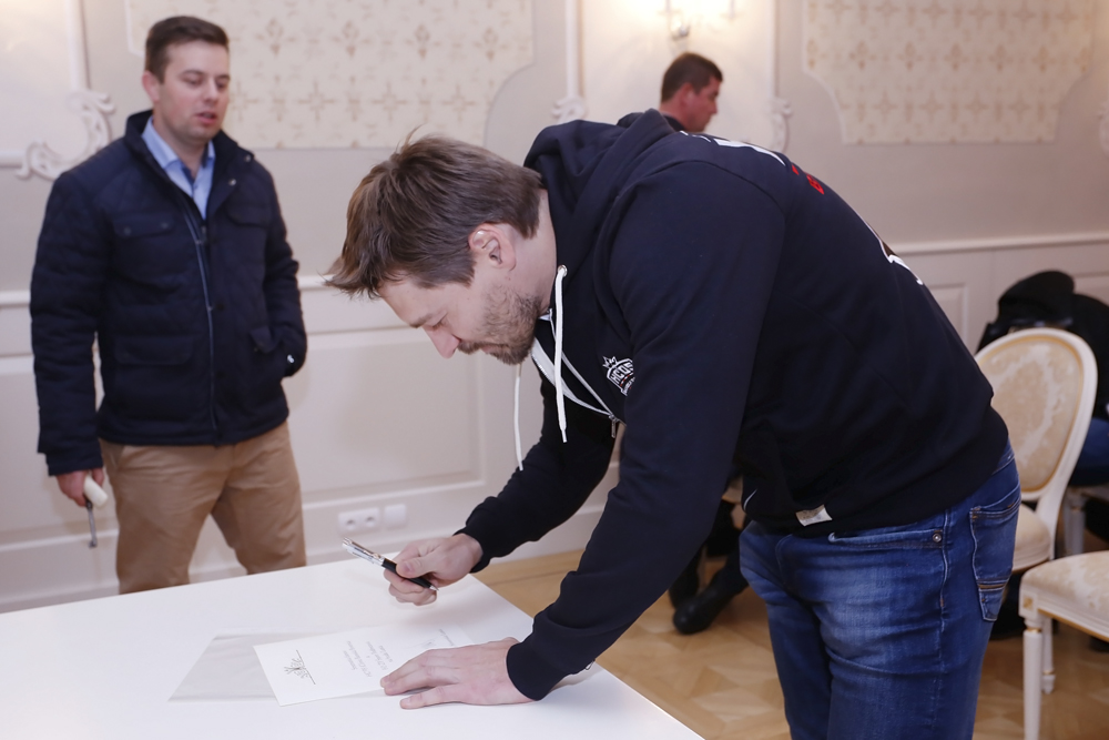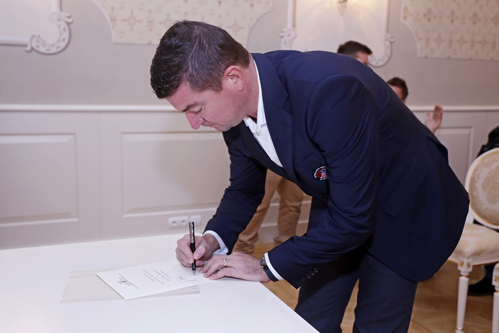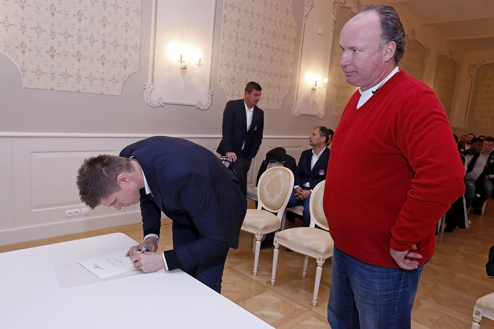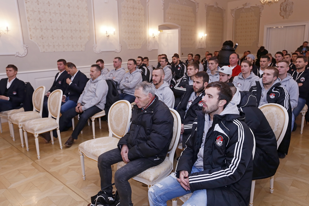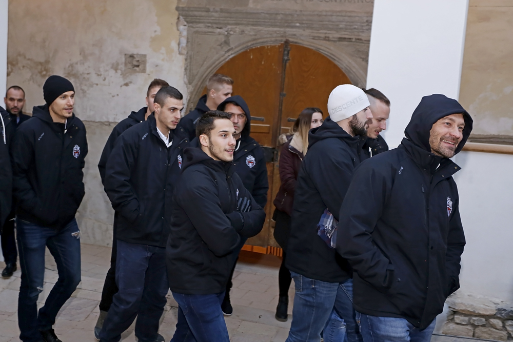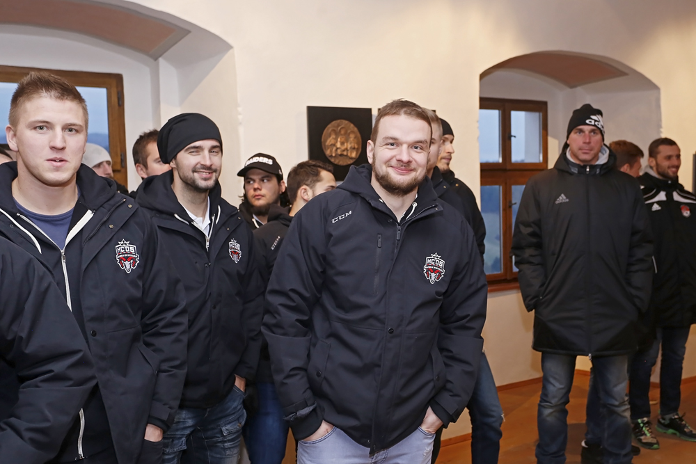 Bystrickí „barani“ sú po 29 zápasoch Tipsport extraligy na čele tabuľky a podbrezovskí „železiari“ po 18 kolách Fortuna ligy na druhej priečke. Tím hokejistov priviedol na Ľupčiansky hrad predseda predstavenstva a riaditeľ klubu Michal Longauer a futbalistov viedol viceprezident Vratislav Greško, pričom sa zapísali na pamätný list. V historickej sieni ich privítal kastelán Hradu Ľupča Mgr. Vladimír Homola