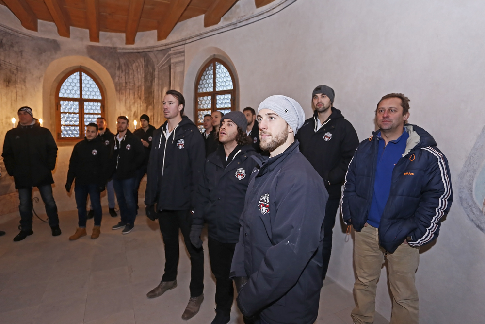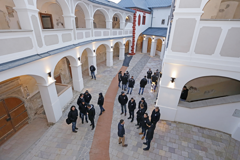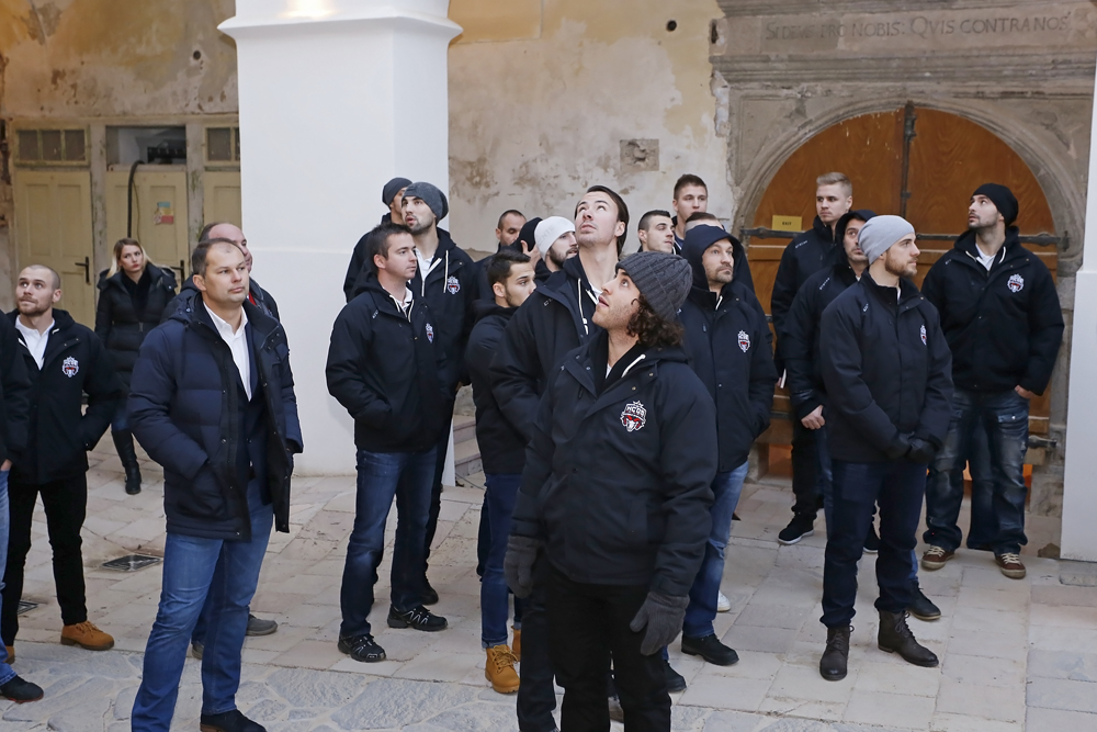 Areál hradu si so záujmom prezreli hráči s vedením oboch mužstiev. Zaujali ich obnovené interiéry, ale aj nádherne reštaurované horné nádvorienajstaršia časť hradu známa pod názvom donjon z polovice 13. storočia.
