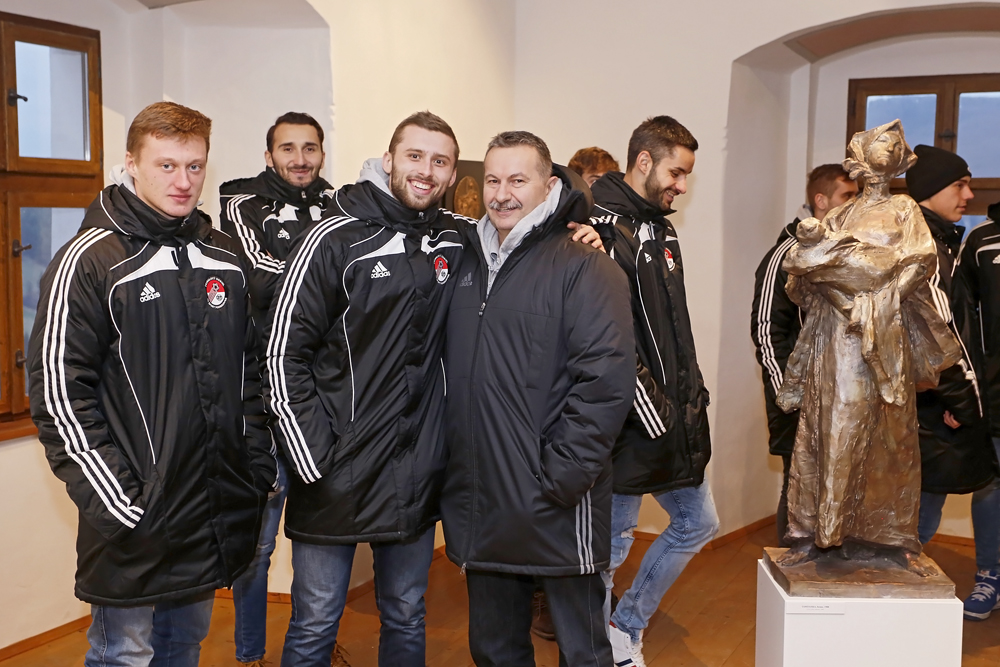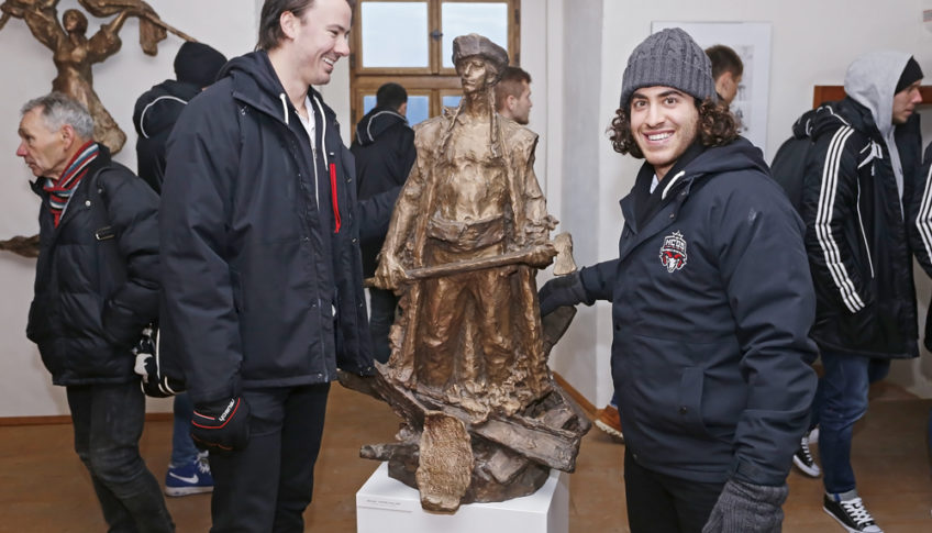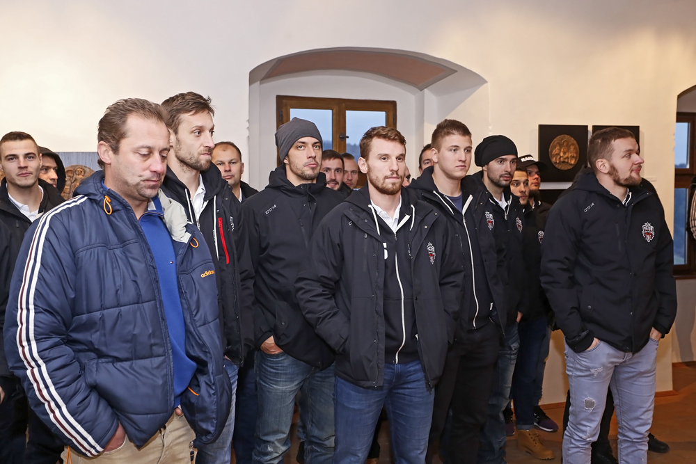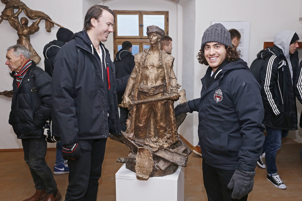 Prehliadka zaujala aj zahraničných hráčov „baranov“. V expozícii diel sochára Jána Kulicha nám pri skulptúre Jánošíka ochotne s úsmevom zapózovali naši kanadskí obrancovia Mathew Maione a  Ty Wishart. Trénera Vladimíra Országha sme sa pýtali, čo je so zraneným americkým brankárom a našou oporou Jasonom Bacashihuom. Ten podľa jeho slov v stredu ešte absolvoval potrebné zdravotné vyšetrenia, takže sa uvidí, kedy sa vráti do bránky. V tej ho vo víťaznom  utorkovom súboji so Žilinou nahradil Andrej Košarišťan.