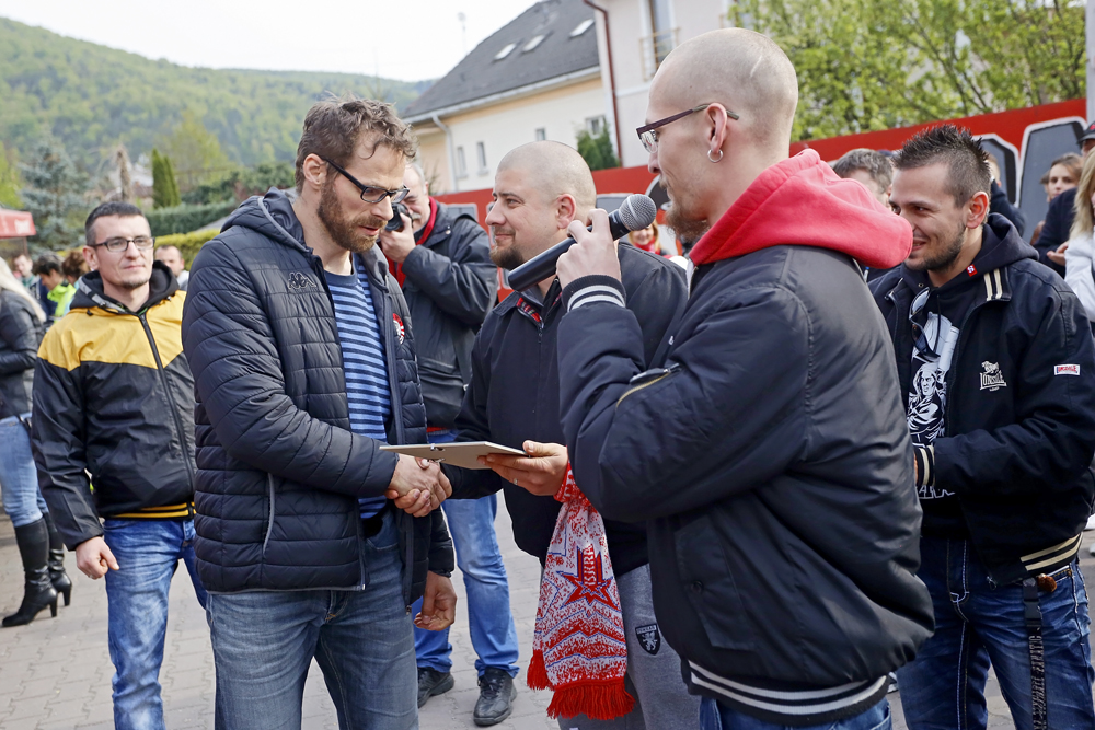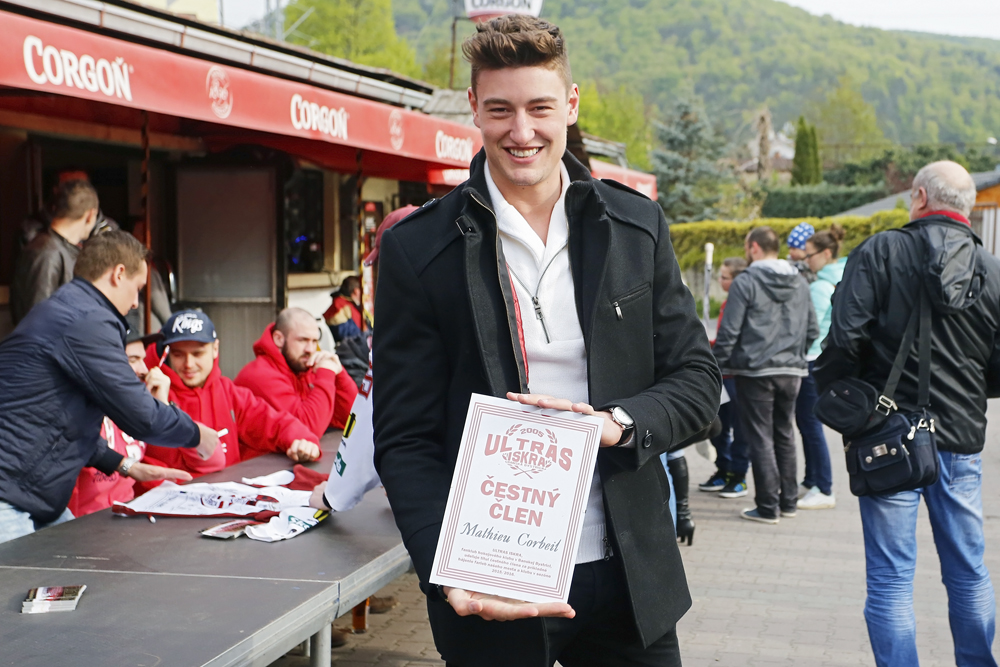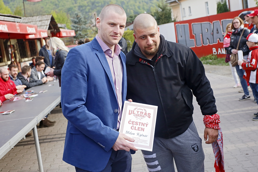 Predstavitelia Ultras Iskra venovali hráčom, trénerom a vedeniu klubu plakety o ich čestnom členstve vo fanklube. Rozruch medzi fanúšikmi nastal, keď hokejistov prišiel podporiť čerstvý svetový šampión najprestížnejšej organizácie WMC v thajskom boxe Vladimír „Dracula“ Moravčík.  Popisovať sa musel aj on.