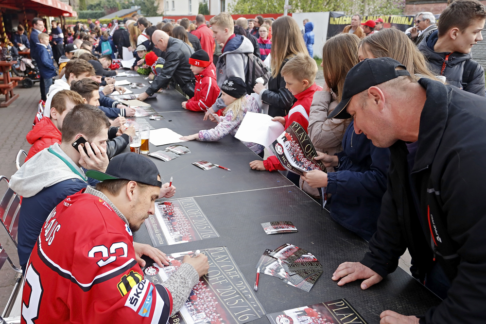 Marketingový a obchodný manažér klubu Atila Béreš pripravil pre fanúšikov plagáty mužstva s podpisovými kartami. Viacerí malí či veľkí priaznivci „baranov“ si priniesli na podpisy hráčov dresy, hokejky, šály či iné predmety s klubovým znakom. Zapájal sa aj maskot Baran, ktorý sa podpisoval srdiečkom.