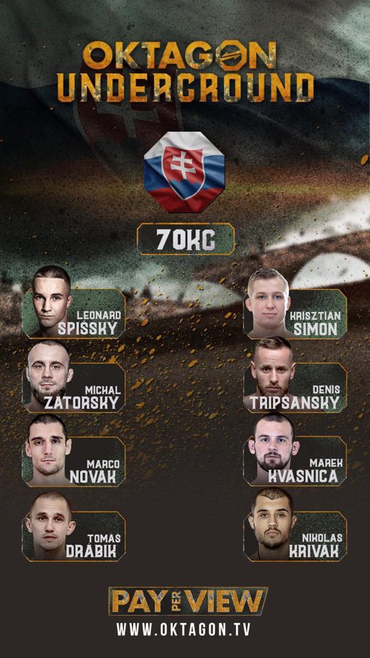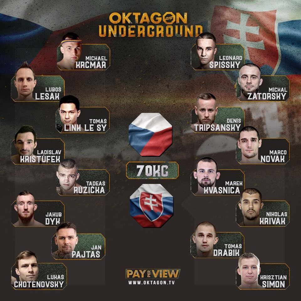 V pyramíde do 70 kg sa postupne vyraďovacím systémom stretne 8 slovenských a 8 českých bojovníkov. Podľa promotéra organizácie Ondreja Novotného je to predovšetkým mix mladého talentu, ale nechýbajú ani skúsení šampióni a veľké mená.