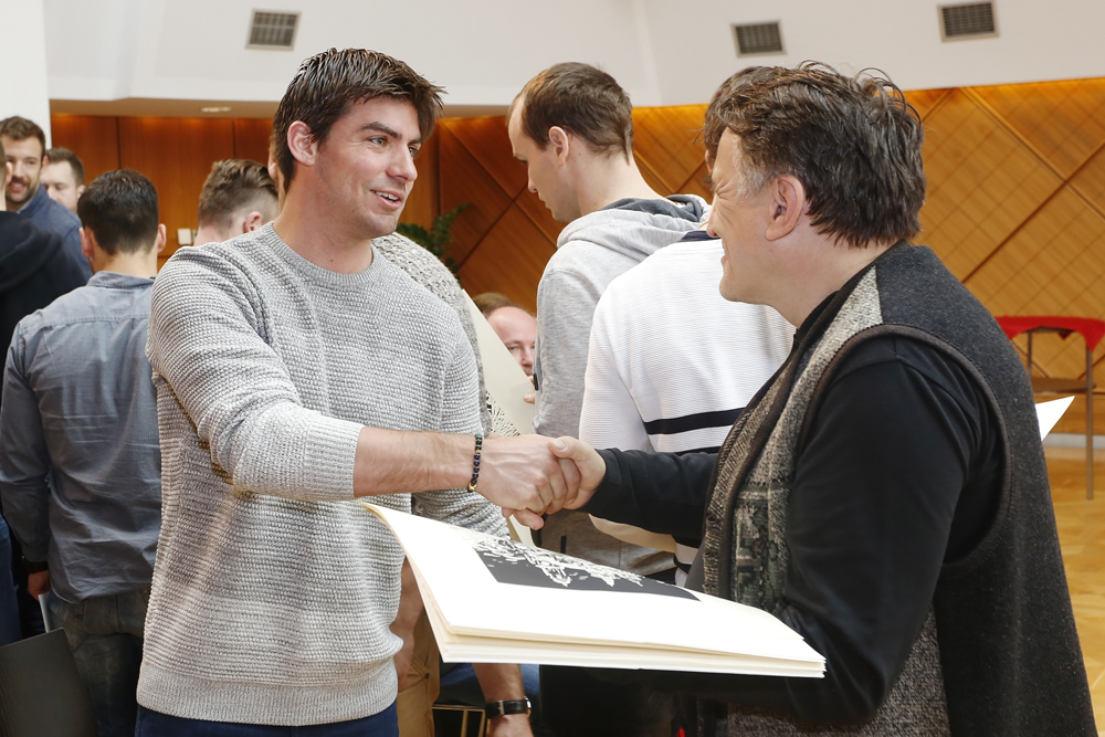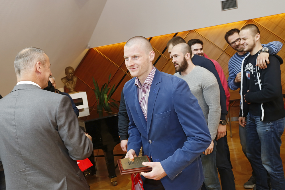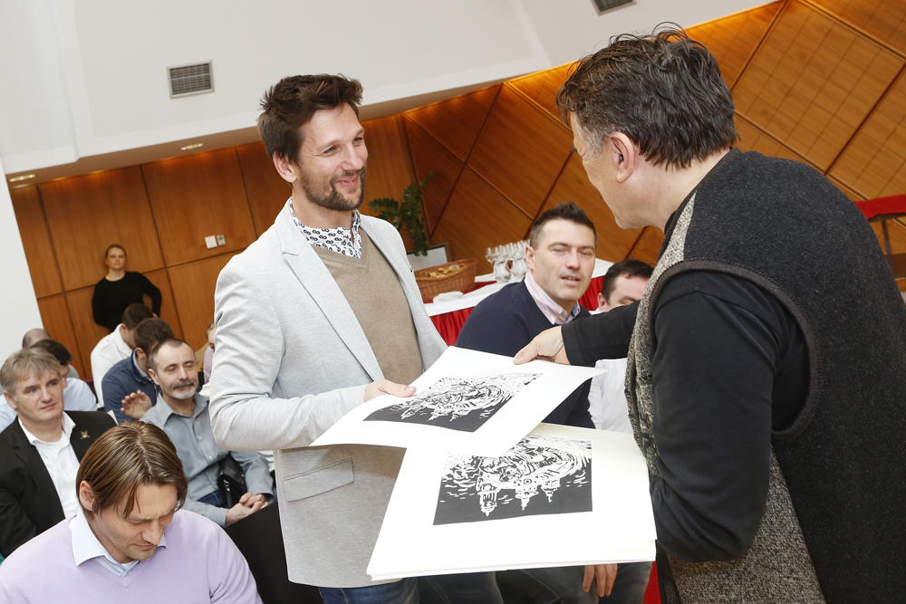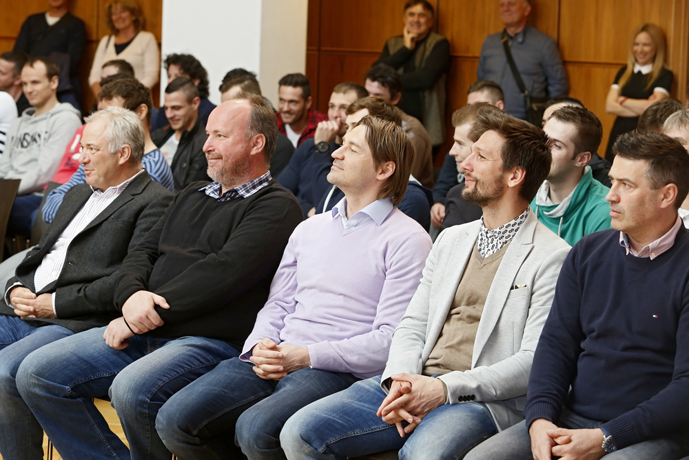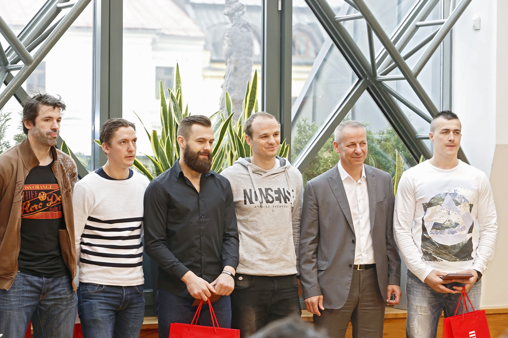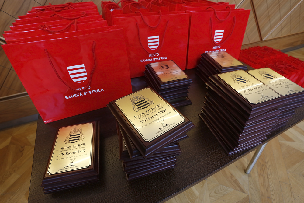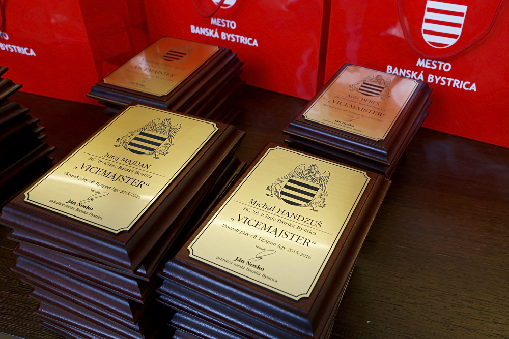 Potom nasledovalo poďakovanie primátora hráčom, trénerom, realizačnému tímu a prezidentovi klubu. Každý z nich dostal pamätnú plaketu s malým darčekom od mesta, ako aj odtlačkom rytiny akademického maliara Štefana Kocku.