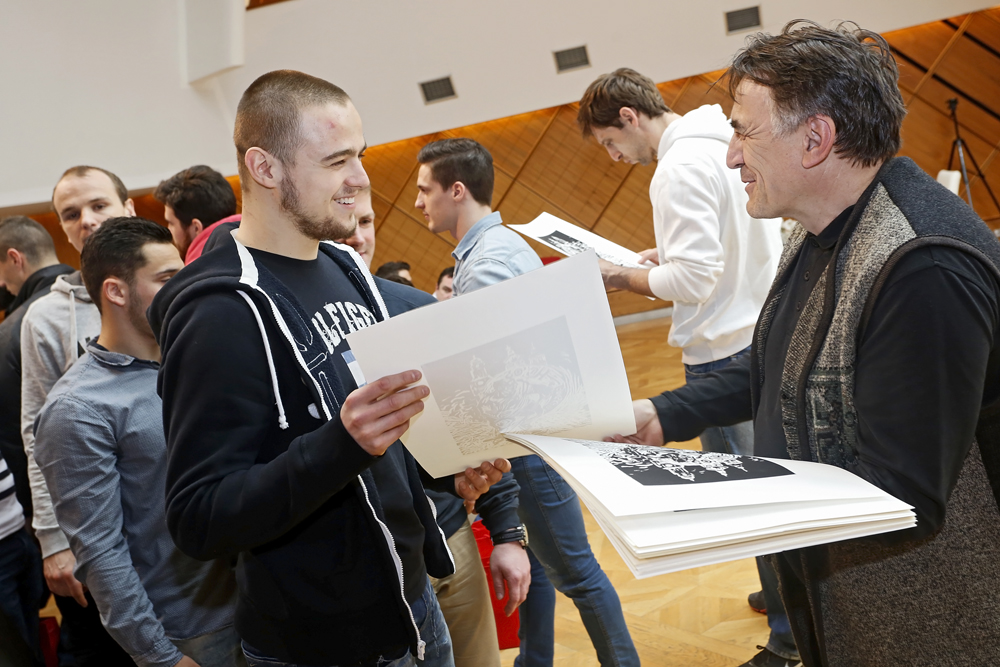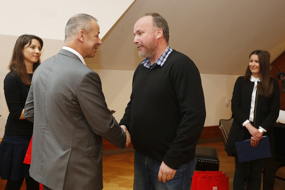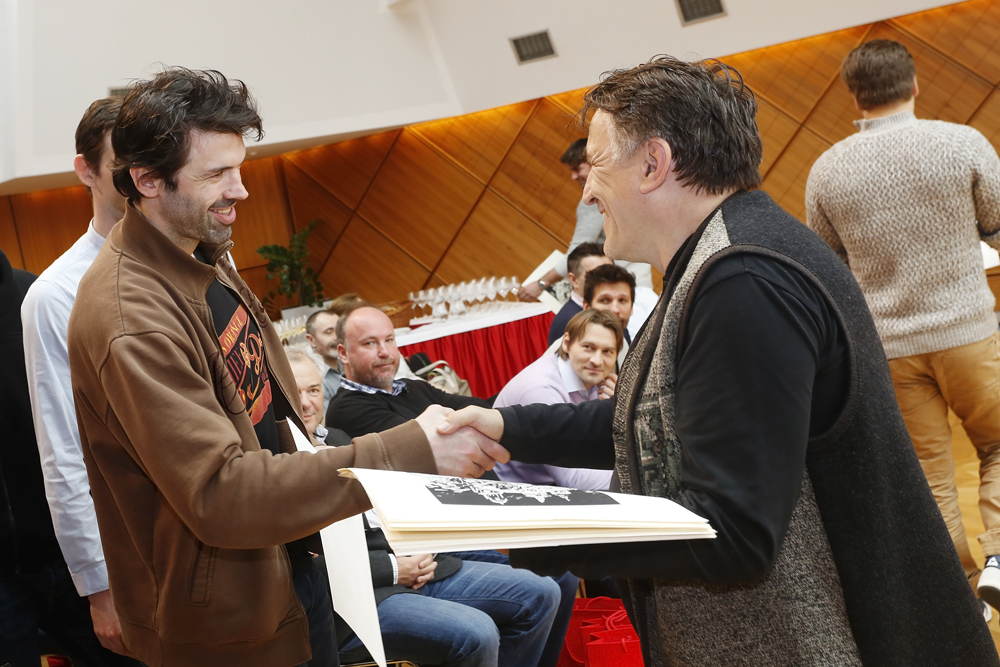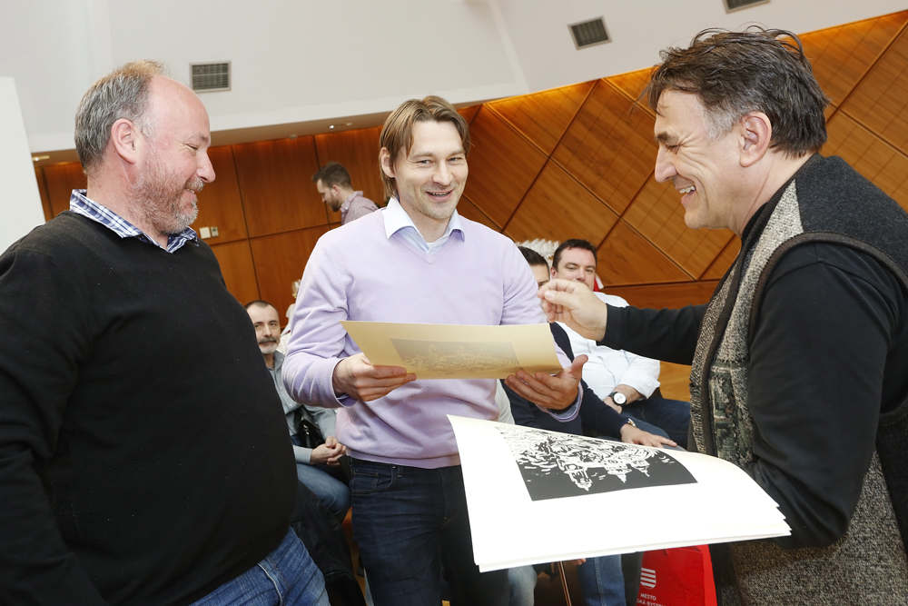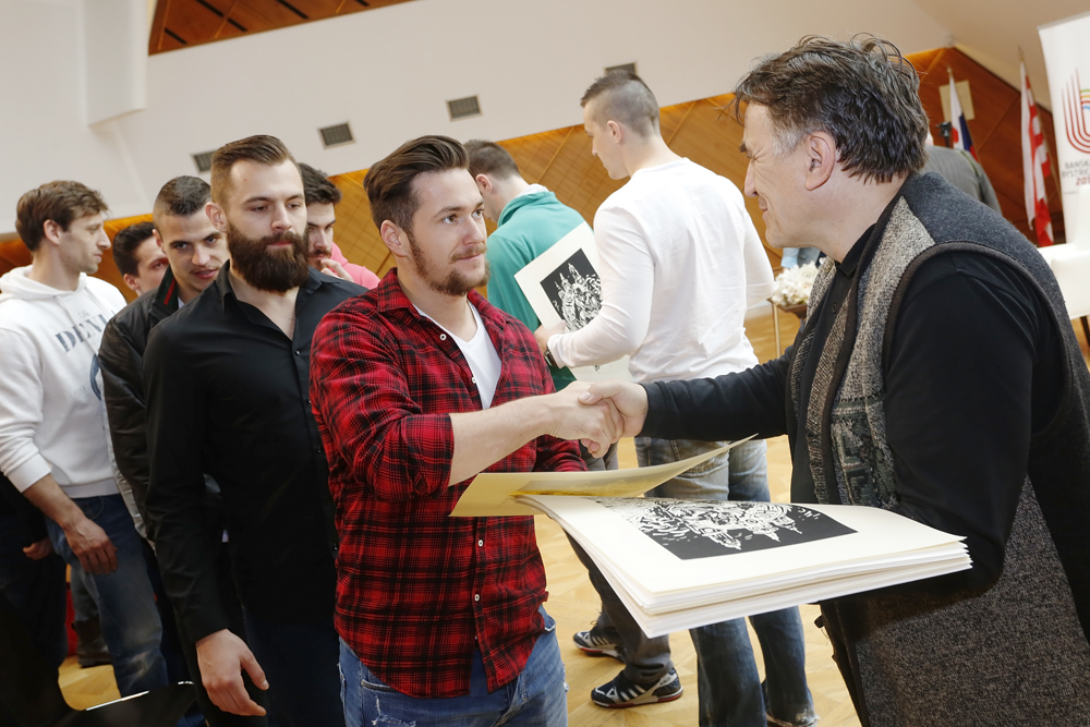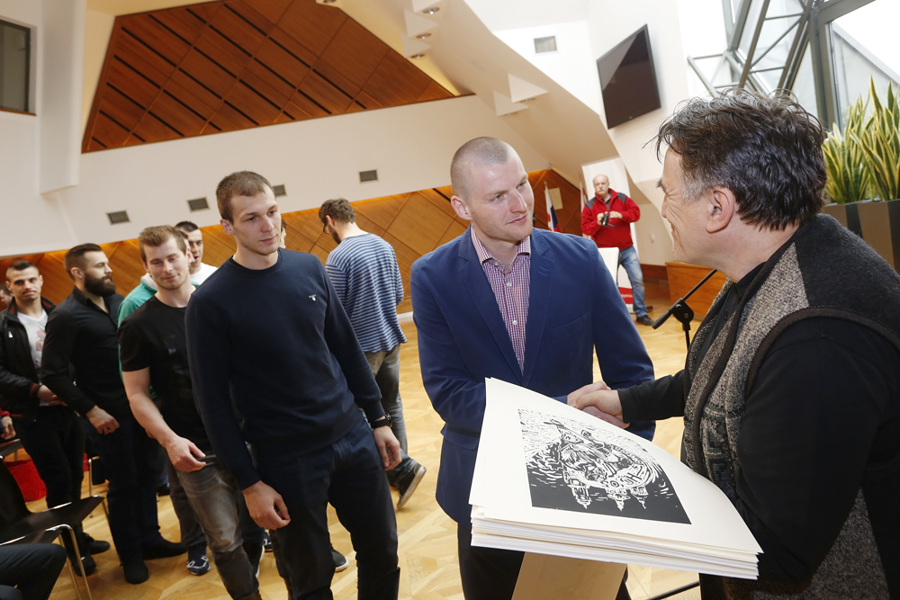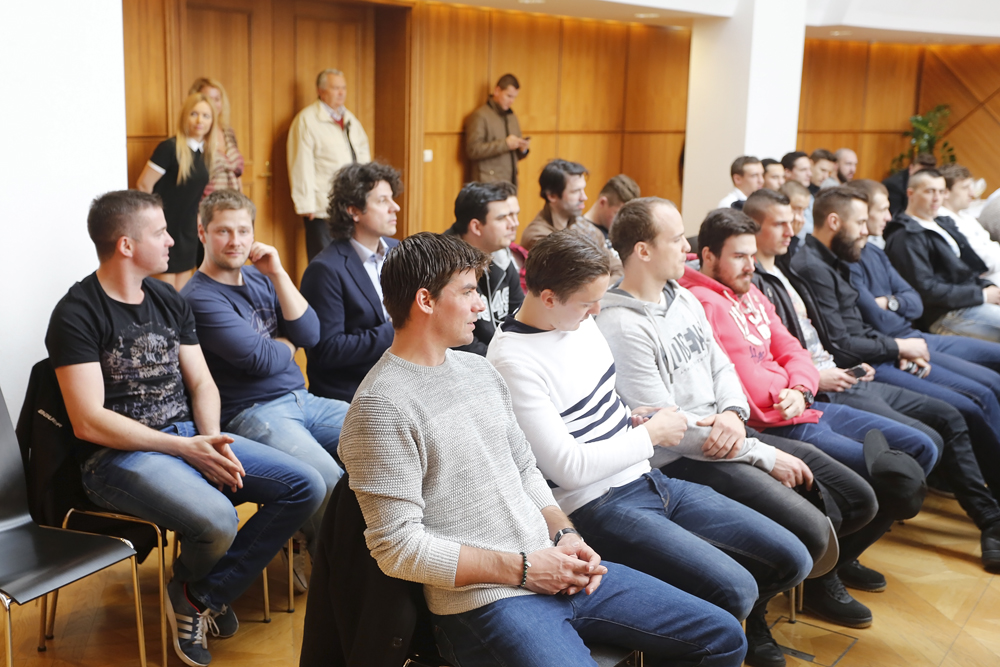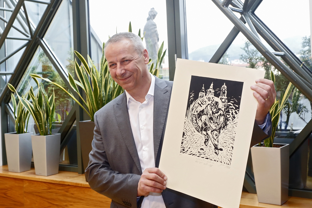 Potom nasledovalo poďakovanie primátora hráčom, trénerom, realizačnému tímu a prezidentovi klubu. Každý z nich dostal pamätnú plaketu s malým darčekom od mesta, ako aj odtlačkom rytiny akademického maliara Štefana Kocku.