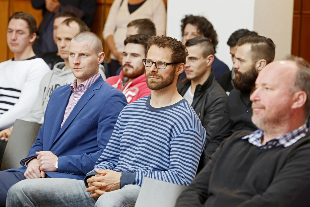Bolo zaujímavé vidieť našich hokejistov bez dresov a výstroje v civile. Sú to sympaťáci na ľade i mimo neho, či sa jedná o slovenských alebo zahraničných hráčov. Viacerí už prišli oholení, pretože počas play off si nechávali rásť brady. Michal Handzuš s niektorými spoluhráčmi si ich zatiaľ nechali.
