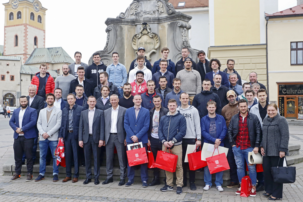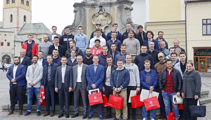 Nasledovali zápisy do pamätnej knihy, prípitok šampanským a spoločné fotenie v Cikkerovej sieni i vonku pod sochou Panny Márie. Bolo to veľmi príjemné stretnutie, ktorému dominovala pozitívna energia všetkých prítomných. Vďaka našim „baranom“ za skvelé zážitky z hokejových zápasov, ktoré sme sa vám počas celej sezóny snažili sprostredkovať, ide aj od redakcie Bystricovín.