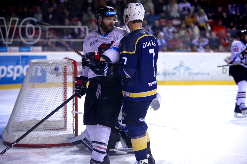 Ján Sýkora, autor dvoch našich gólov: „Rozohrali sme si zápas dobre, ale v druhej tretine od stavu 4:0 sme zbytočne hrali taký hurá hokej, inkasovali sme za to dva góly. V šatni sme si však v druhej prestávke niečo povedali a vrátili sa k svojej hre, čoho vyústením boli ďalšie naše góly v súperovej sieti. Dotiahli sme to zaslúžene do víťazného konca. V tejto lige nieje žiadny tím ľahký, takže sme radi, že sa nám podarilo dať góly a po nich sme už hrali s ľahšími nohami. Pre súpera to bolo tým pádom ťažšie doťahovať sa na nás. Čo sa týka môjho gólu na 4:0, prešiel som cez hráčov súpera, ale mal som v koncovke aj šťastie, puk mi začal pred brankárom skákať, no stihol som ho bekhendom prehodiť cez Rajnu a prepadlo mu to tam. Pri druhom góle to bola krásna prihrávka od Higgsiho (ktorého poklepal vzápätí po pleci).“