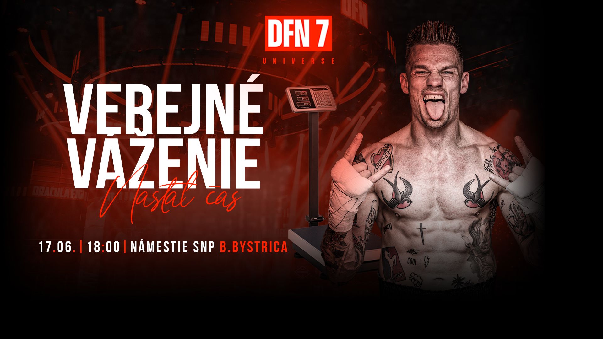 V piatok večer, deň pred veľkolepou bojovou show DFN 7 vo Zvolene, sa v Banskej Bystrici na námestí SNP uskutoční verejné váženie profi bojovníkov tohto podujatia a predstavený bude historicky prvý pás šampióna DFN Universe, o ktorý sa v sobotu bojuje. Ide o ručnú výrobu banskobystrickej remeselníčky a zlatníčky Magdalény Anny Jančurovej, ktorá na pódiu poodhalí celý proces výroby. Pôjde o unikátnu záležitosť.