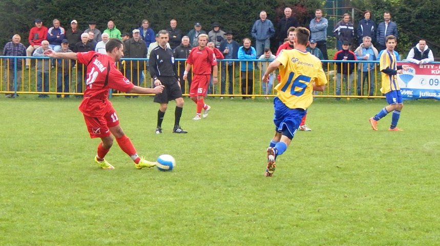V Banskej Bystrici lákalo hlavne atraktívne derby v Sásovej, kde domáci hostili Šalkovú a prvý polčas im vyšiel nad očakávanie. Už v piatej minúte sa ujal krížny center do šestnástky, loptu nezachytili dvaja hosťujúci obrancovia, dostala sa k Mariánovi Sanitrovi a ten ju už poslal do odkrytej bránky. V 22. minúte bolo 2:0. Zaváhanie v defenzíve Šalkovej využil Maroš Choma, zasekol si aj brankára a skóroval. Líder súťaže zostal zaskočený a do prestávky nedokázal odpovedať. Nešli mu hlavne štandardky i finálna fáza. Po zmene strán nakopol hostí rozhodca Kaliňák. Ten totiž ukázal po hodine hry na biely bod a penaltu premenil stabilne úspešný exekútor hostí Lukáš Palovič. Sásovčanov tento moment mierne rozhodil a inkasovali o osem minút aj druhý gól. Na 2:2 vyrovnal Tomáš Mikulec. Bol to však posledný presný zásah duelu, ktorý sa napokon skončil deľbou bodov (viac aj v našej fotogalérii).