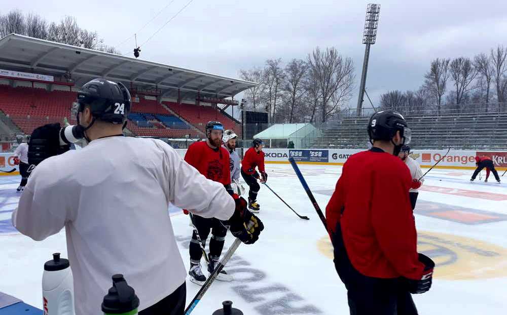 Ľadová plocha po náhlom oteplení a daždi na futbalovo-atletickom štadióne SNP na Štiavničkách zažíva pred hokejovým Winter Classic ťažkú skúšku. Hráči Banskej Bystrice museli v sobotu predpoludní ukončiť tréning už po pätnástich minútach. Zvolenčania sa otočili z pol cesty.