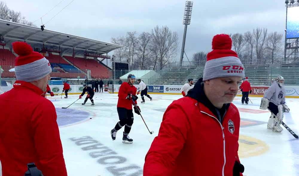 Hráči HKM Zvolen sa museli vrátiť späť. Aj oni mali na programe tréning na tejto ľadovej ploche, no cestu by merali zbytočne. Navyše o 16:00 hodine sa začína Súboj legiend a na ten by chceli mať organizátori ľad pripravený tak, aby sa toto atraktívne podujatie mohlo uskutočniť. Dôležité je, aby nepršalo.