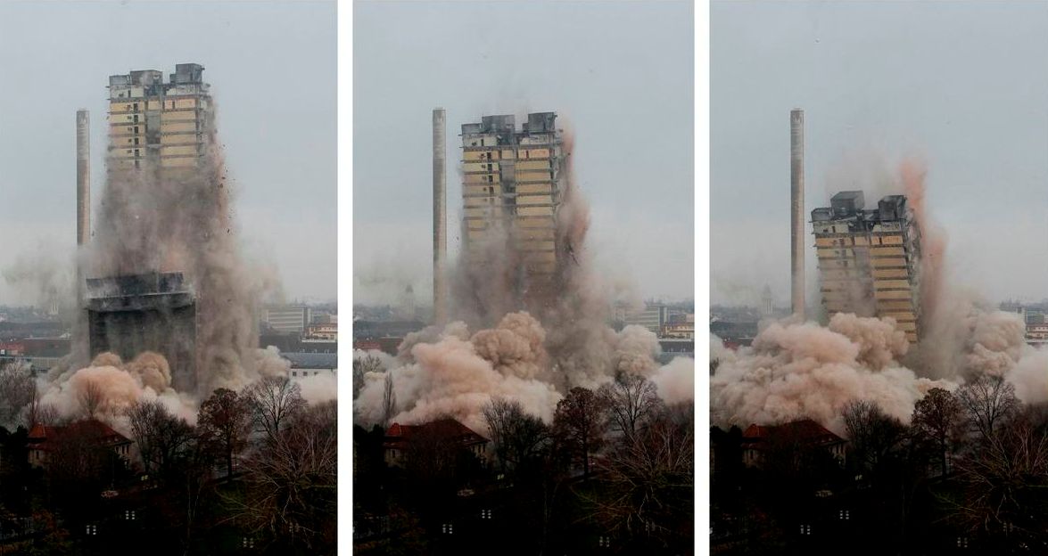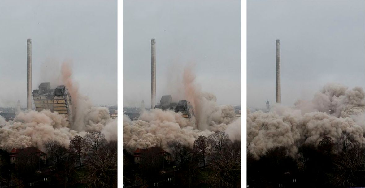 V každom prípade tento odstrel bol pre zvedavých pozorovateľov nezabudnuteľným zážitkom Na mieste bývalého univerzitného areálu po vyčistení priestoru vyrastú dve administratívne výškové budovy.