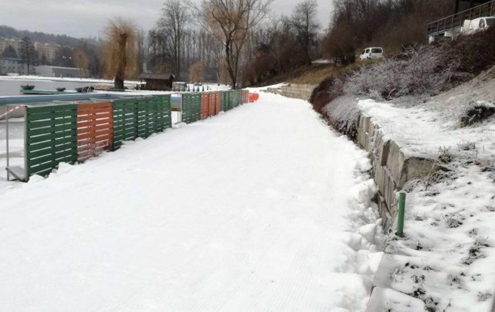 Pomerne teplá zima bez snehu koncom minulého roka neumožňovala zasnežiť areál na plážovom kúpalisku. Až nočné mrazy po Novom roku pomohli nasadiť snežné delá. Tie vyrobili dostatok umelého snehu, spolu s časťou pripadnutého na úpravu bežeckých tratí, ktoré sú vo večerných hodinách osvetlené .