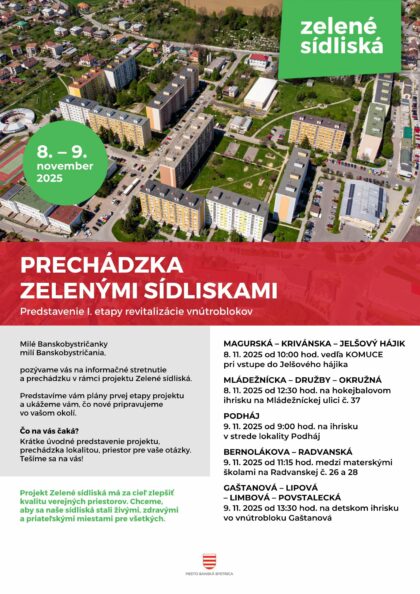 Súčasťou prechádzok bude prehliadka vnútroblokových priestorov a priestor na vaše otázky, na ktoré radi odpovedia zamestnanci mestského úradu a vedenie mesta.
