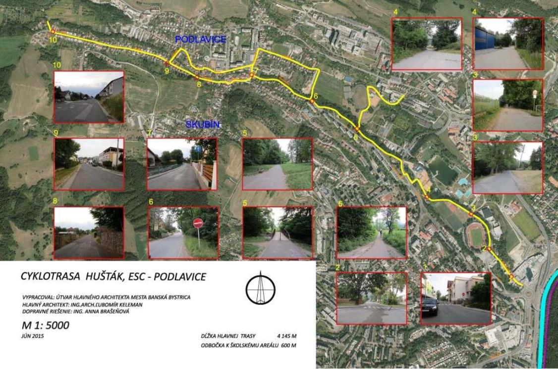 Umiestnenie cyklistického chodníka je v zmysle Územného generelu nemotorovej dopravy. Plánovaná cyklotrasa smerujúca z Huštáku do Podlavíc sa napojí na existujúci 150-metrový úsek cyklistického chodníka, ktorý vedie od nákupného centra Europa Shopping Center po Štadión SNP.