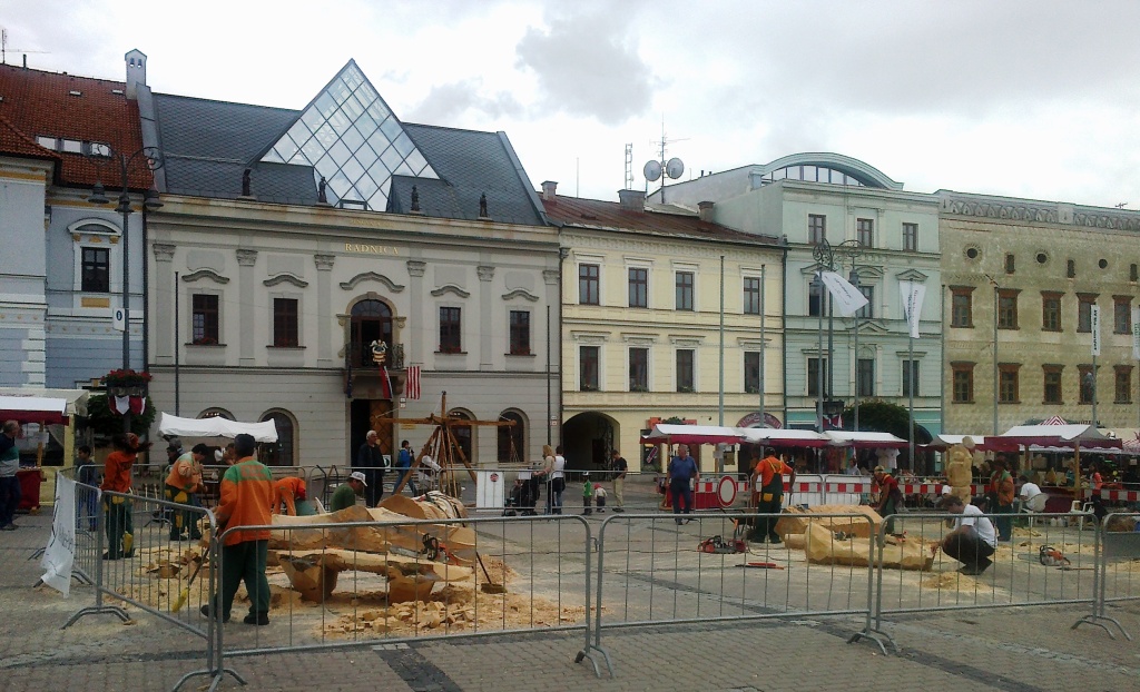 Inak je zaujímavé, že s takouto technicky náročnou umeleckou produkciou priamo v historickom jadre mesta nemajú problémy pamiatkári, ktorí okrem iného stanovujú mestu prísne podmienky vzhľadu historických budov či dlažby, vyjadrovali sa tiež k podmienkam vzhľadu a umiestnenia letných terás na Námestí SNP. Pritom v tesnej blízkosti centra mesta sa nachádza park pod Pamätníkom SNP alebo mestský park, kde by sa sochy z dreva nielen prijateľnejším spôsobom tvorili, ale aj vystavovali.