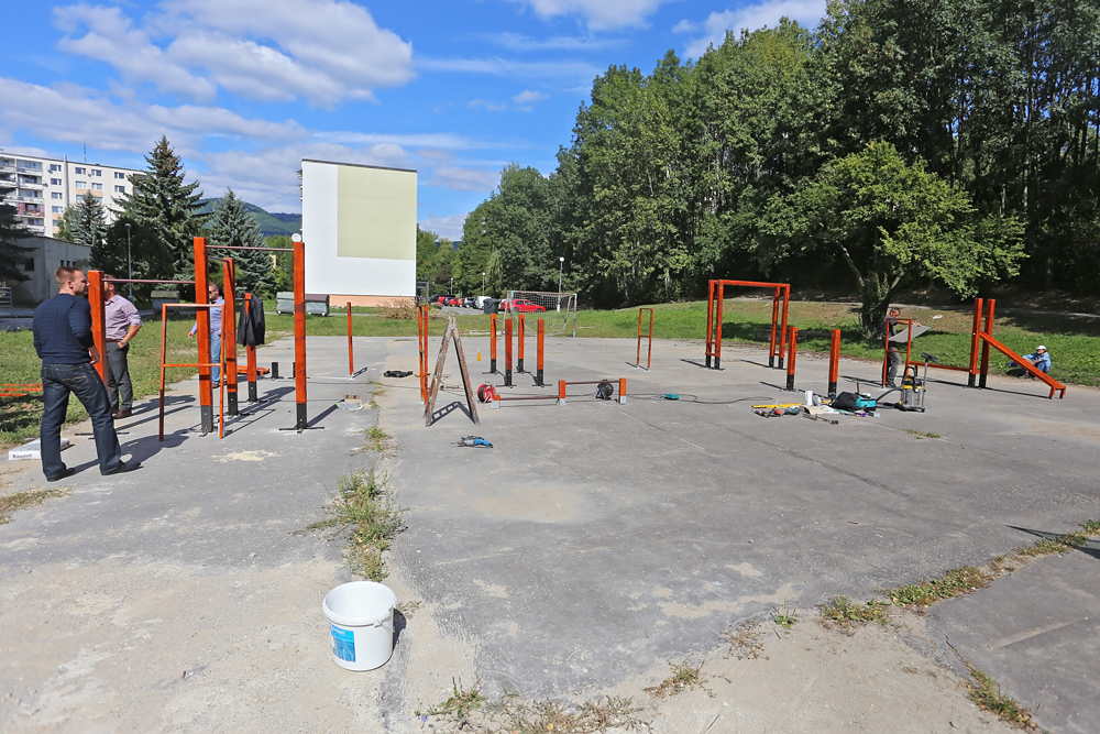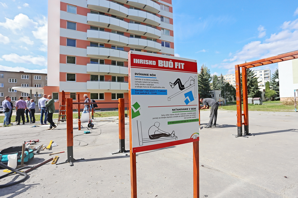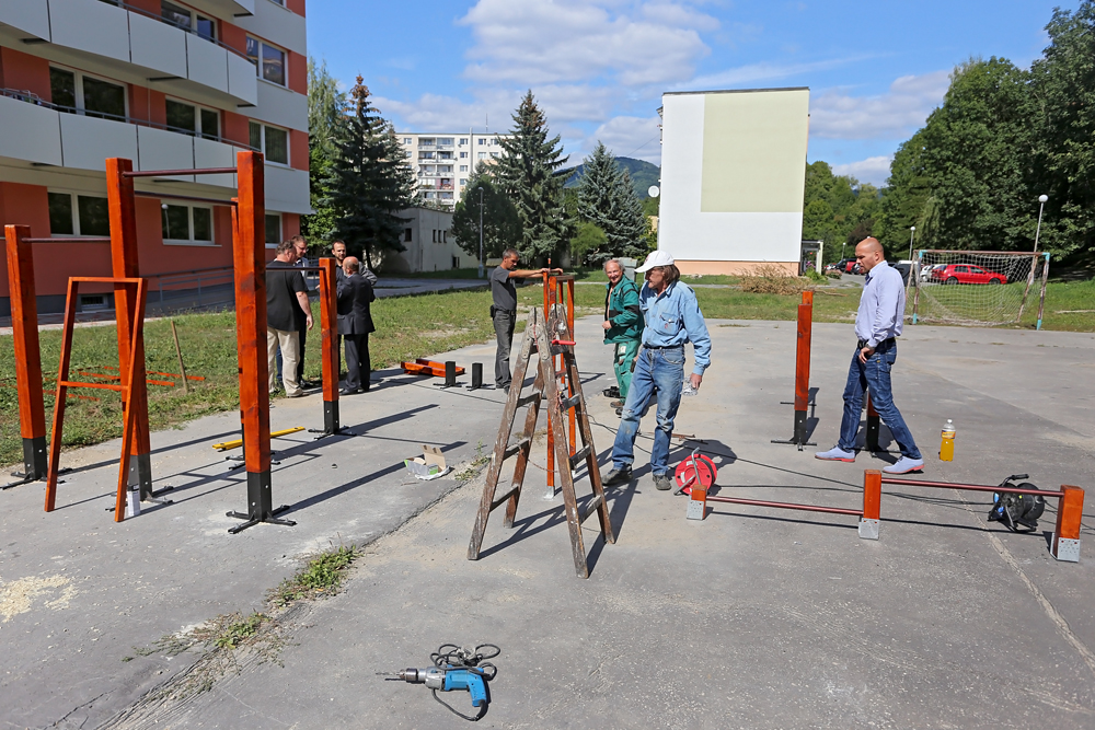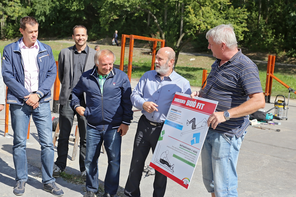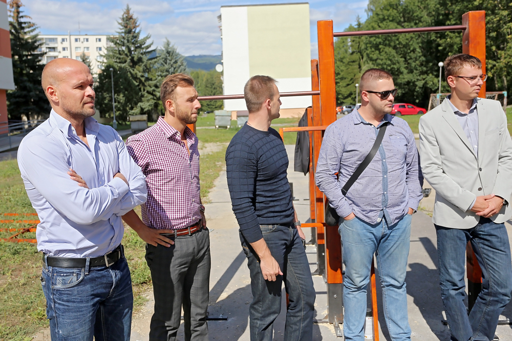 Na ihrisku sa stretli mestskí poslanci – zväčša členovia dozornej rady BPM s.r.o. spolu s predstaviteľmi Mladých sociálnych demokratov, ktorí spolu s mestom a mestskou spoločnosťou finančne prispeli na rekonštrukciu tohto športoviska. Pracovníci Správy  športových a telovýchovných zariadení práve osádzali jednotlivé konštrukcie na cvičenie.