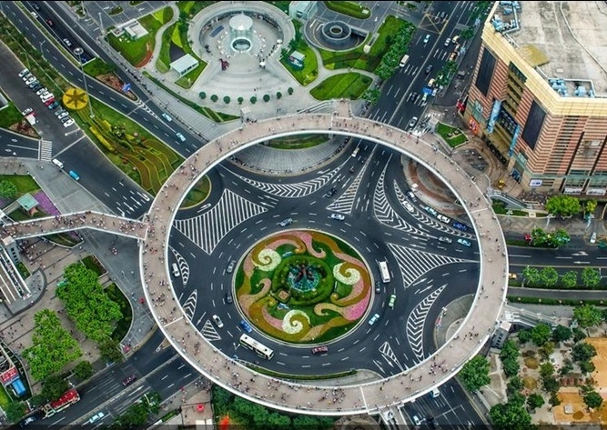 Napríklad v tom, ako riešia prechody chodcov cez frekventované cesty, v tomto prípade veľkým kruhovým nadjazdom. Čo poviete?