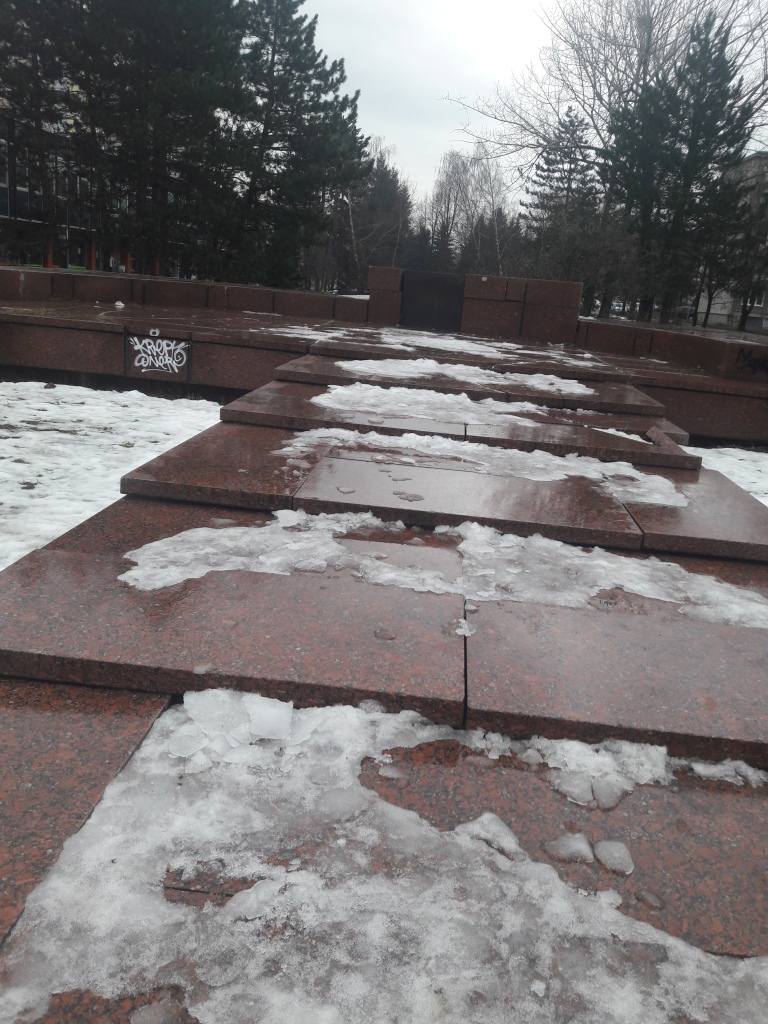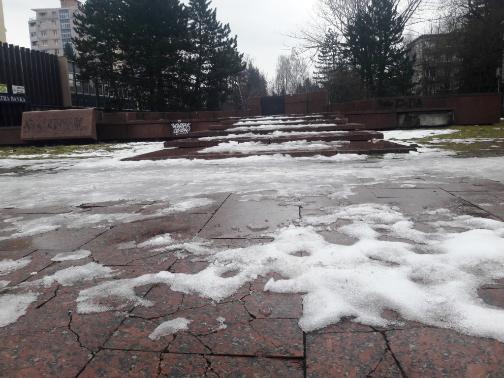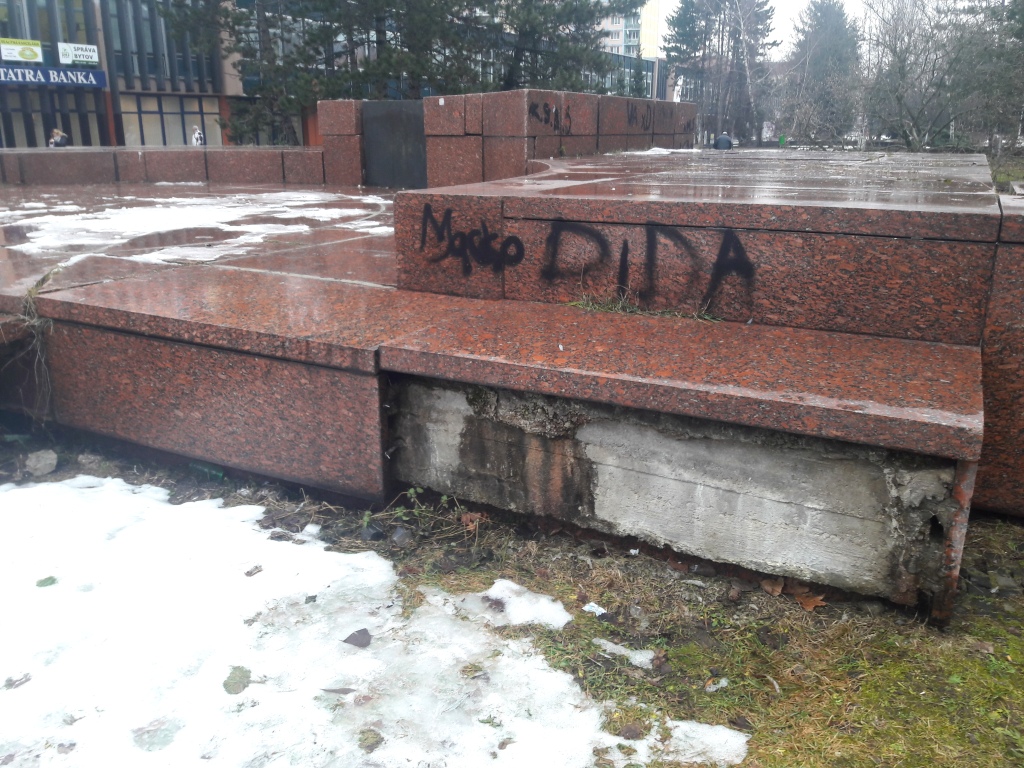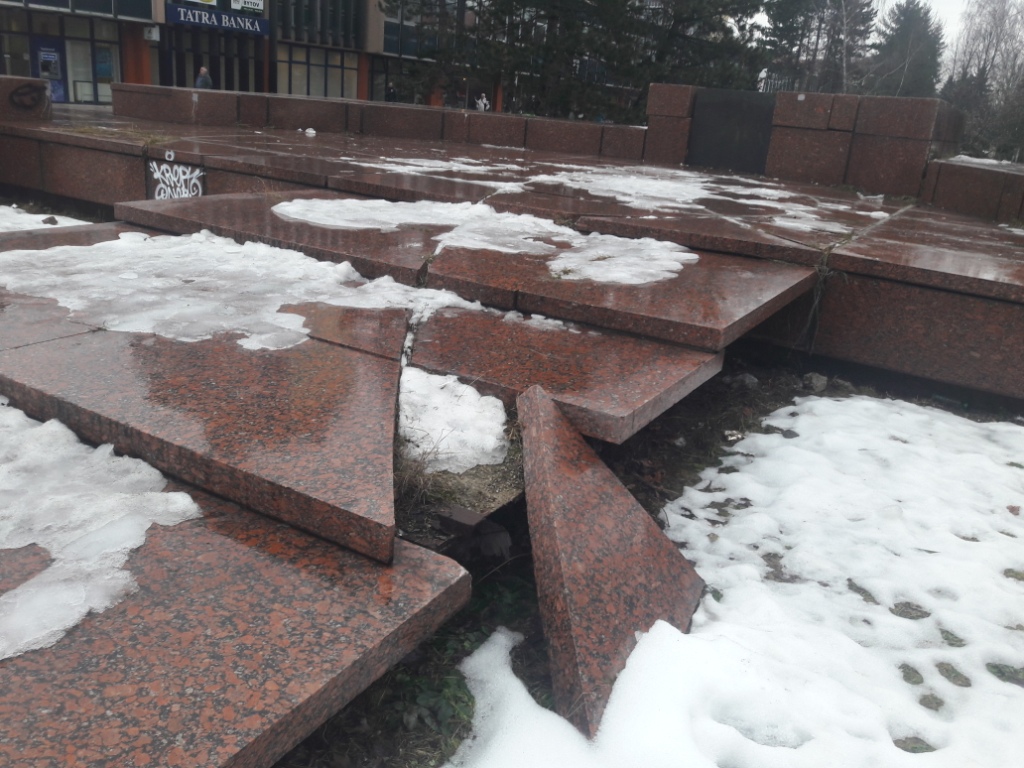 Už sme sa tejto téme venovali viackrát, ale nič sa nezmenilo. Možno by sa konečne mohol niekto zamyslieť nad tým, či by predsa len nestálo za to niečo s prázdnym žulovým podstavcom vrátane okolitého priestoru urobiť. Ak sa nemá odstrániť, tak by sa mal podstavec minimálne opraviť alebo na ňom malo čosi pekné byť.