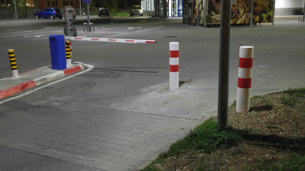 Rébus nastáva až pri nevhodne a zbytočne umiestnenom železnom stĺpiku pri vjazde na parkovisko. Ten je osadený asi v dvoch tretinách celkovej šírky vjazdu od parkovacieho automatu. Musíte dlho rozmýšľať nad jeho opodstatnením, pretože medzera pri zatvorenej rampe je aj bez tohto stĺpika tak malá, že tadiaľ žiadny automobil neprejde. Táto zábrana neslúži ani pre motocyklistov, ktorým tadiaľ umožňuje pohodlný prejazd.