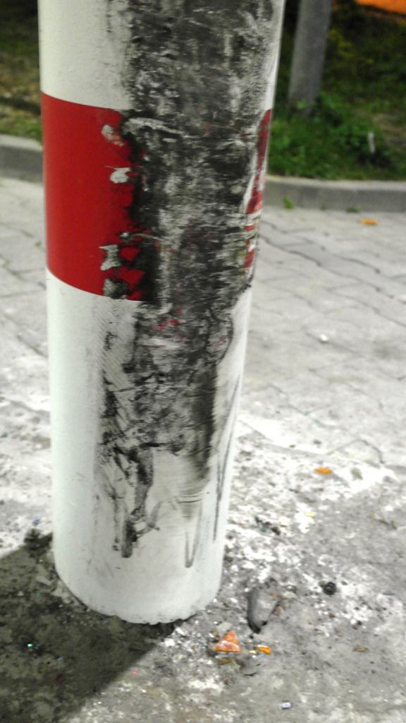Nemým svedkom je samotný stav spomínaného stĺpika. Je celý odretý a v jeho blízkosti ležia na zemi oškreté časti laku, úlomky zo svetlometov a smerových svetiel. Preto aj touto cestou  vyzývame všetkých Bystričanov, aby si dávali pozor pri príjazde k parkovaciemu  automatu.  pri Lidli na Tajovského  Buďte tam ostražití, aby ste predišli prípadnej škode na vašom automobile…