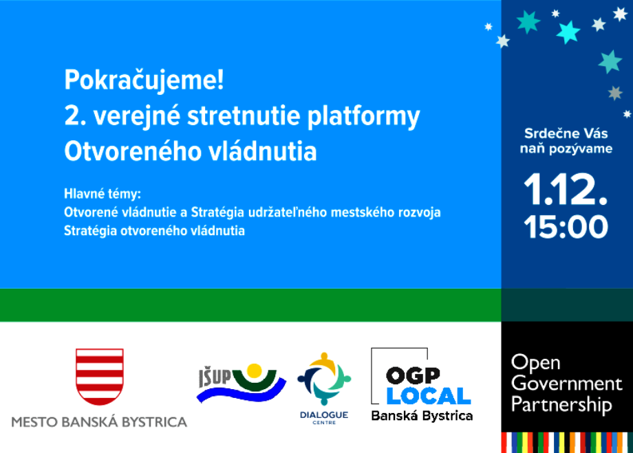Pre samosprávu je dôležité, aby sa Banskobystričanky a Banskobystričania zúčastňovali na rozhodovaní o veciach verejných, a preto sa v roku 2020 zapojila do iniciatívy s názvom Open Government Partnership Local – Partnerstvo pre Otvorené vládnutie na miestnej úrovni (OGP). V rámci nej chce mesto reagovať na potrebu skvalitňovania participatívných procesov a zlepšiť formy spolupráce s podnikateľmi, záujmovými skupinami či občianskymi združeniami. V stredu 1. decembra o 15:00 hodine sa uskutoční ďalšie online stretnutie s obyvateľmi Banskej Bystrice.