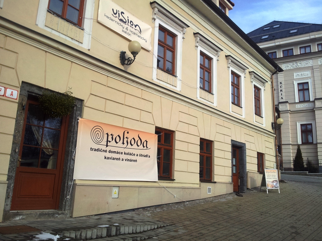 Ak na potulkách naším mestom zablúdite za tržnicu na začiatok Bakossovej ulici oproti Kúrii, narazíte na malú kaviareň s vinárňou Pohoda. Už pri vchode vás víta vás ponuka tradičných domácich koláčov a štrúdle.