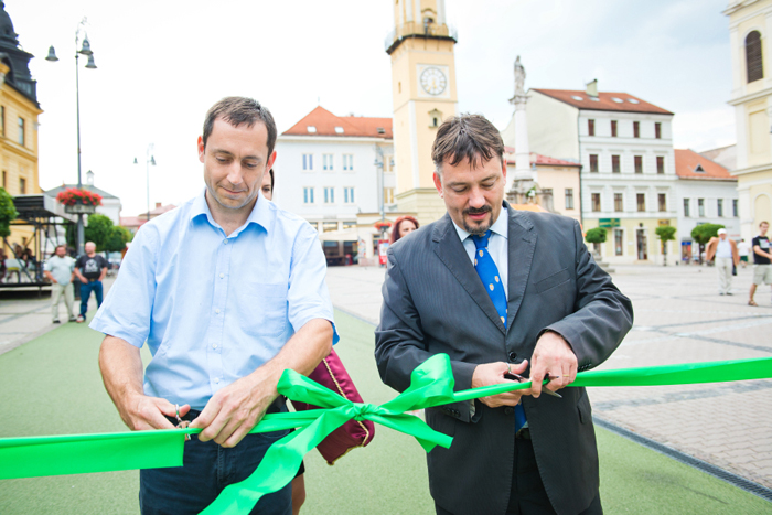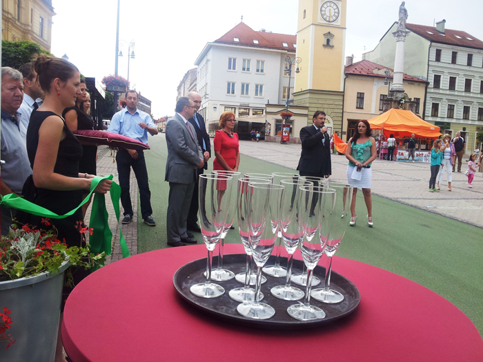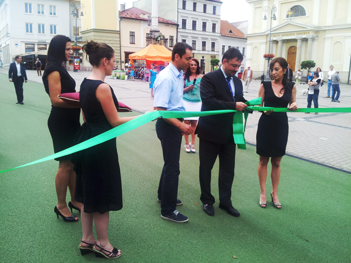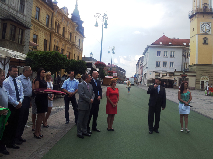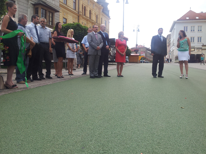 Primátor mesta Banská Bystrica Peter Gogola spolu s predsedom Cechu hostinských Ladislavom Lukáčom slávnostne prestrihli zelenú pásku. „Chcem sa poďakovať všetkým, ktorí sa podieľali na obnove centra mesta so zeleným  povrchom  vozovky. Najmä Ing. Renáte Hláčikovej z MsÚ, Milanovi Smädovi a jeho firme spolu s ďalšími dodávateľmi, ale aj poslancom mestského zastupiteľstva, ktorí v rozpočte mesta vyčlenili na túto investíciu potrebné financie,“ uviedol primátor vo svojom príhovore.